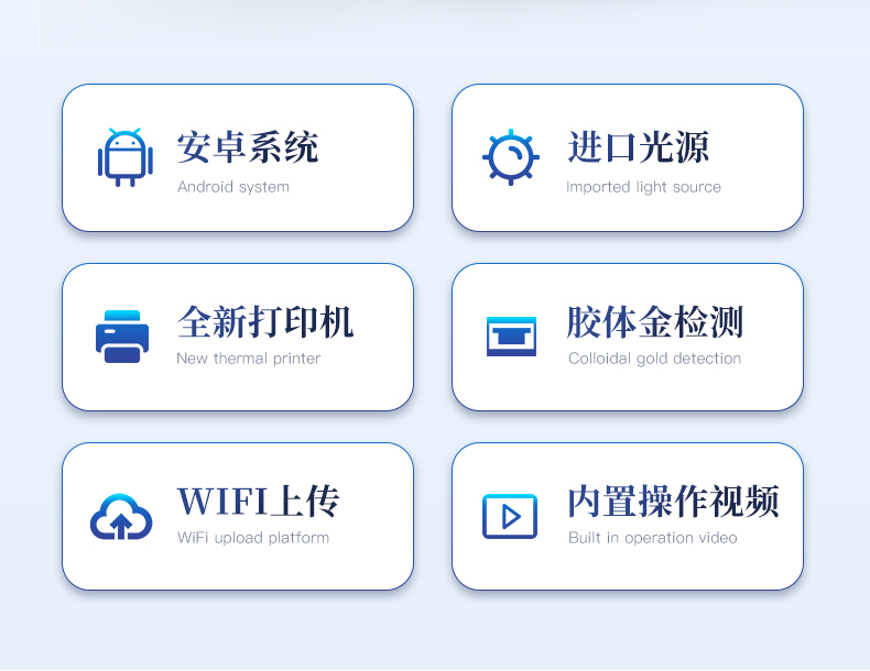 | 主控芯片采用32位處理器,運(yùn)轉(zhuǎn)速度更快,穩(wěn)定性強(qiáng)。 | 直流12V供電,可連接車載電源。 | 光源亮度自動(dòng)調(diào)節(jié)與校準(zhǔn) | 脈沖式恒流驅(qū)動(dòng),避免連續(xù)發(fā)光引起光衰和溫漂。 | 可設(shè)置密碼登錄 | 不間斷進(jìn)樣,連續(xù)檢測(cè) | 樣本編號(hào)自動(dòng)累加。 | 檢測(cè)項(xiàng)目可擴(kuò)充。 | 檢測(cè)結(jié)果可批量打印,批量上傳。 | 檢測(cè)結(jié)果為Excel表格,連接電腦即可拷貝。 | 檢測(cè)結(jié)果存儲(chǔ)容量20萬(wàn)條 | 固件可升級(jí) |