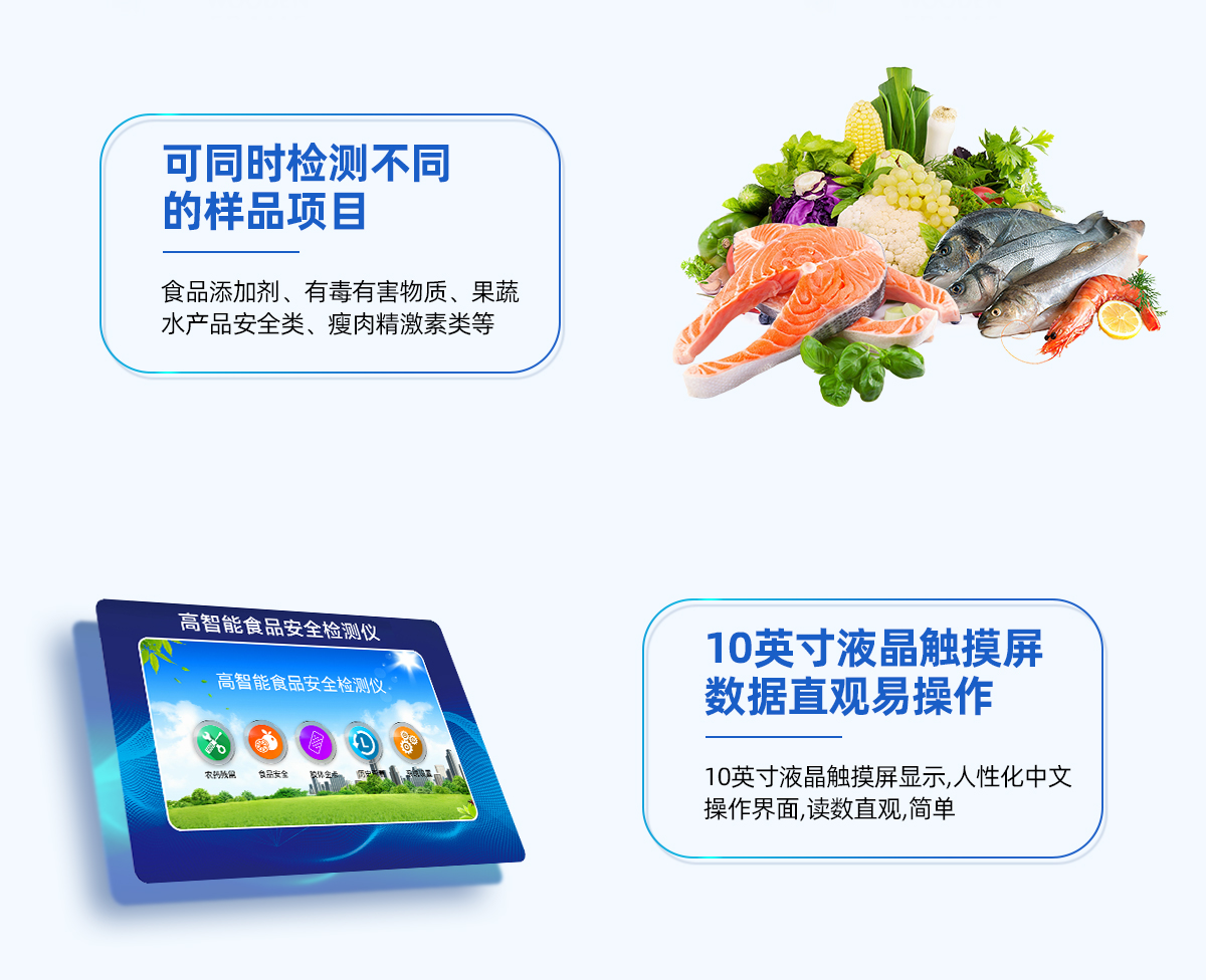 多功能食品安全檢測(cè)儀可快速檢測(cè)200多項(xiàng)目,包含非食用化學(xué)物質(zhì)、濫用食品添加劑、農(nóng)藥殘留、獸藥殘留、重金屬、病害肉、營(yíng)養(yǎng)強(qiáng)化劑、抗生素類殘留、激素類殘留、真菌毒素類殘留、化學(xué)類殘留等現(xiàn)場(chǎng)的定性定量檢測(cè)。該多功能食品安全檢測(cè)儀為集成化食品安全快速檢測(cè)分析設(shè)備,廣泛應(yīng)用于市場(chǎng)監(jiān)管局、檢測(cè)中心、衛(wèi)生監(jiān)督部門、農(nóng)業(yè)部門、院校及各單位食堂、食品肉產(chǎn)品深加工企業(yè)、商超市場(chǎng)、司法部門、餐飲機(jī)構(gòu)、養(yǎng)殖場(chǎng)、屠宰場(chǎng)、檢驗(yàn)檢疫部門等單位使用。