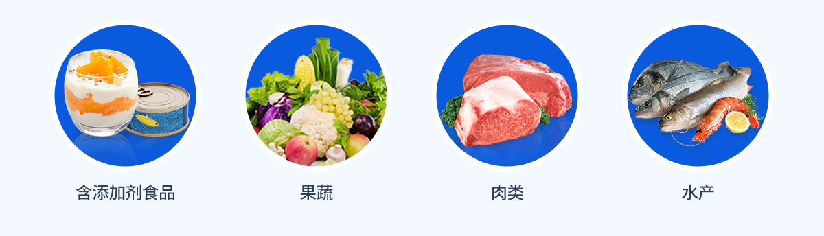 | 食品添加劑:二氧化硫、雙氧水、亞硝酸鹽、硝酸鹽、苯甲酸鈉、山梨酸、糖精鈉、甜蜜素、安賽蜜、硫酸鎂等 | 有毒有害物質(zhì):甲醛、吊白塊、硼砂、過(guò)氧化苯甲酰、溴酸鉀、羅丹明B、三聚氰胺、蘇丹紅等 | 果蔬中:有機(jī)磷和氨基甲酸酯類農(nóng)藥殘留; | 病害肉診斷:組胺、揮發(fā)性鹽基氮、肉制品酸價(jià)、水發(fā)產(chǎn)品中組胺 | 重金屬含量:鉛、鎘、鉻、汞、砷、錫、鎳、鋁等;食用油脂檢測(cè):過(guò)氧化值、酸價(jià)、油脂丙二醛等。 | 瘦肉精激素類(獸藥):鹽酸克倫特羅、沙丁胺醇、萊克多巴胺、己烯雌酚、喹乙醇等 | 抗生素殘留類(獸藥):四環(huán)素類、硝基呋喃類、磺胺類、沙星類、喹諾酮類、慶大霉素、鏈霉素、阿莫西林、紅霉素等 | 水產(chǎn)品安全類:孔雀石綠、氯霉素、呋喃妥因代謝、呋喃西林代謝、呋喃它酮代謝、呋喃唑酮代謝等 | 真菌毒素類:食用油、糧食及飼料中黃曲霉毒素B1、奶中黃曲霉毒素M1、嘔吐毒素、玉米赤霉烯酮、赭曲霉毒素A等 | 水酒飲品分析:乳品及牛奶中蛋白質(zhì);酒中甲醇、乙醇、雜醇油;蜂蜜中果糖和葡萄糖、蔗糖、淀粉酶、酸度;水中氰化物、余氯,飲料中維C等 | 調(diào)味品成分:食醋的總酸、醬油的總酸、芝麻油純度、谷氨酸鈉、醬油氨基酸態(tài)氮、食鹽中亞鐵氰化鉀、食鹽中碘等 | 食用色素類:紅色色素(胭脂紅、莧菜紅、赤蘚紅、誘惑紅)、黃色色素(檸檬黃、日落黃)、藍(lán)色色素(亮藍(lán))等 | 動(dòng)物疫病類:豬藍(lán)耳病毒、豬瘟病毒、豬偽狂犬病毒、豬偽狂犬病毒gE蛋白、豬口蹄疫3ABC蛋白、豬口蹄疫病毒IgG、豬細(xì)小病毒、雞禽流感等 |