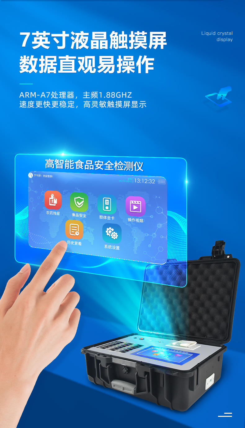 多功能食品安全檢測儀可快速檢測200多項(xiàng)目,包含非食用化學(xué)物質(zhì)、濫用食品添加劑、農(nóng)藥殘留、獸藥殘留、重金屬、病害肉、營養(yǎng)強(qiáng)化劑、抗生素類殘留、激素類殘留、真菌毒素類殘留、化學(xué)類殘留等現(xiàn)場的定性定量檢測。該多功能食品安全檢測儀為集成化食品安全快速檢測分析設(shè)備,廣泛應(yīng)用于市場監(jiān)管局、檢測中心、衛(wèi)生監(jiān)督部門、農(nóng)業(yè)部門、院校及各單位食堂、食品肉產(chǎn)品深加工企業(yè)、商超市場、司法部門、餐飲機(jī)構(gòu)、養(yǎng)殖場、屠宰場、檢驗(yàn)檢疫部門等單位使用。