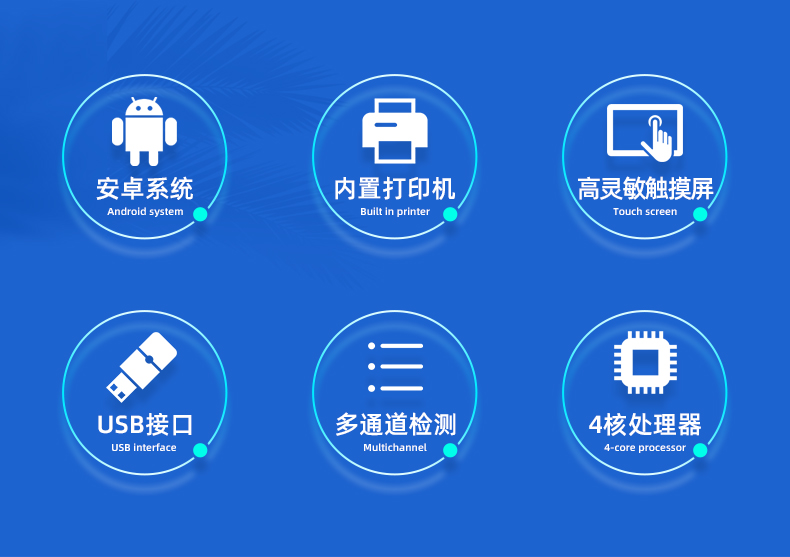 | 安卓智能操作系統(tǒng),采用更加**的UI交互界面,儀器具有wifi聯(lián)網(wǎng)上傳、4G聯(lián)網(wǎng)傳輸、GPRS無線遠傳、網(wǎng)線連接功能,快速批量上傳數(shù)據(jù)。 | 智能化程度高,儀器具有自檢功能:具有開機自檢和調(diào)零功能,具有自動檢測重復性功能。 | 新一代高速熱敏打印機,檢測完成可自動打印或批量打印檢測報告和二維碼。 | 儀器帶有監(jiān)管平臺,數(shù)據(jù)可局域網(wǎng)和互聯(lián)網(wǎng)數(shù)據(jù)上傳,檢測結(jié)果直接傳至食品安全監(jiān)管平臺。進行區(qū)域食品安全監(jiān)管及大數(shù)據(jù)分析處理與數(shù)據(jù)統(tǒng)計,檢測區(qū)域食品安全長短期動態(tài),達到食品安全問題預估、預警 | 一體化主機,包含食品安全檢測模塊、多通道農(nóng)藥殘留檢測模塊、膠體金免疫層析檢測模塊。 | 一體化便攜式快檢設備,滿足現(xiàn)場及流動檢測使用需求,能夠在同一軟件下實現(xiàn)所有檢測項目的檢測,并可通過同一窗口直觀顯示檢測結(jié)果。 | 膠體金模塊檢測方式:軌道式自動傳輸掃描,檢測完成后自動退出檢測卡。 | CT線自動識別,無需手動調(diào)整。 | 內(nèi)置強大的數(shù)據(jù)庫,具有多品類多種類樣品菜單功能,可靈活選擇檢測樣品,不同的檢測通道可同時檢測不同的樣品項目。也可在儀器上直接編輯錄入樣品名稱、檢測指標、送檢單位等信息并保存進樣品數(shù)據(jù)庫。 | 產(chǎn)品內(nèi)置操作演示視頻,是您身邊的化驗指導專家。 | 樣品處理簡單省力,整體操作快速、安全、便捷。 | 儀器具有自身保護功能,可設置用戶名及密碼,防止非工作人員操作等。 | 高靈敏度,高檢測精度,高重復性精度,掃描式高精度光學傳感器。 | 結(jié)果判定線可修改,對照值標定值可保存,斷電不丟失數(shù)據(jù)。 | 兼容市場上所有的膠體金卡,使用耗材不受限制,極大增強用戶使用體驗。 | 儀器具有重新校準、鎖定、恢復出廠設置功能。 |