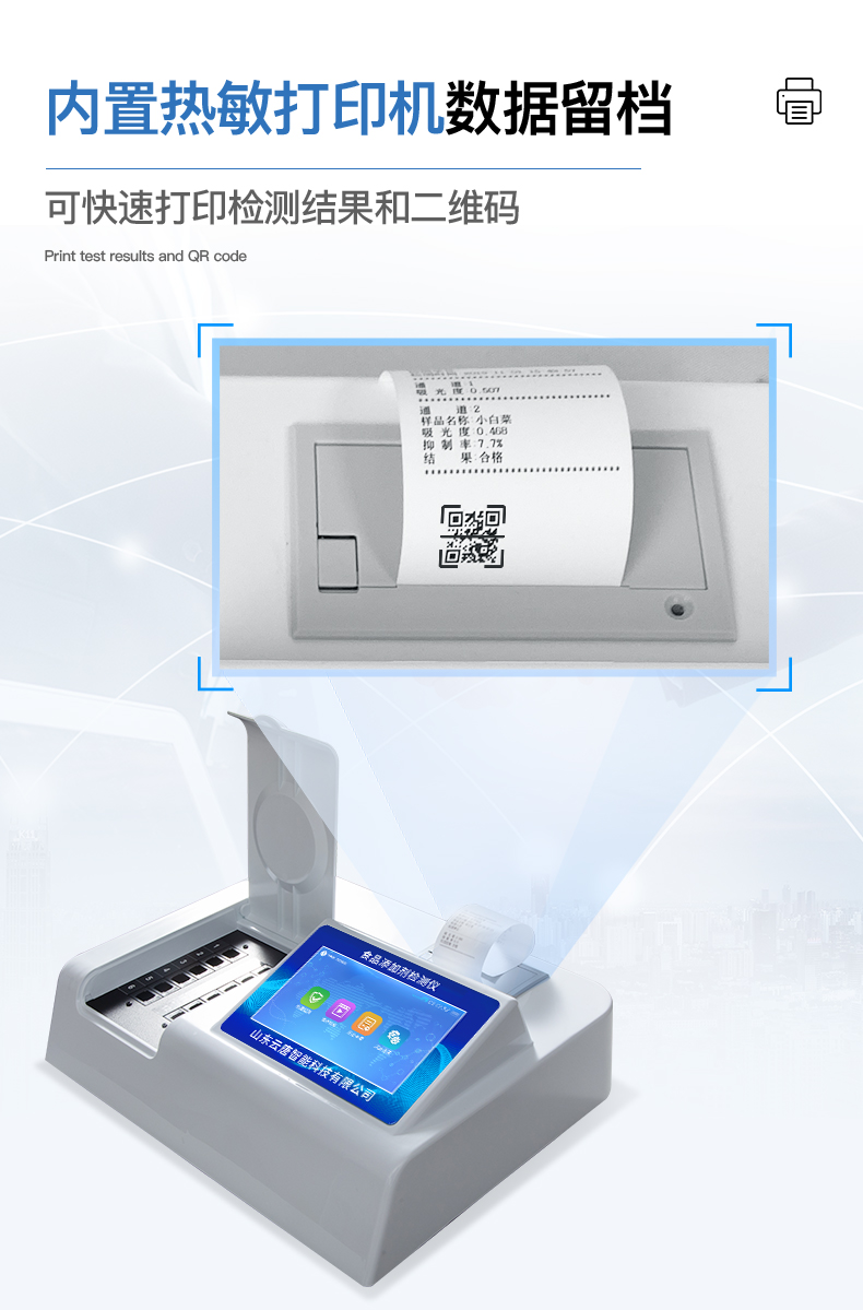5、配備新一代嵌入式熱敏打印機(jī),可選擇手動打印或者自動打印,檢測完成可自動打印檢測報告和二維碼。