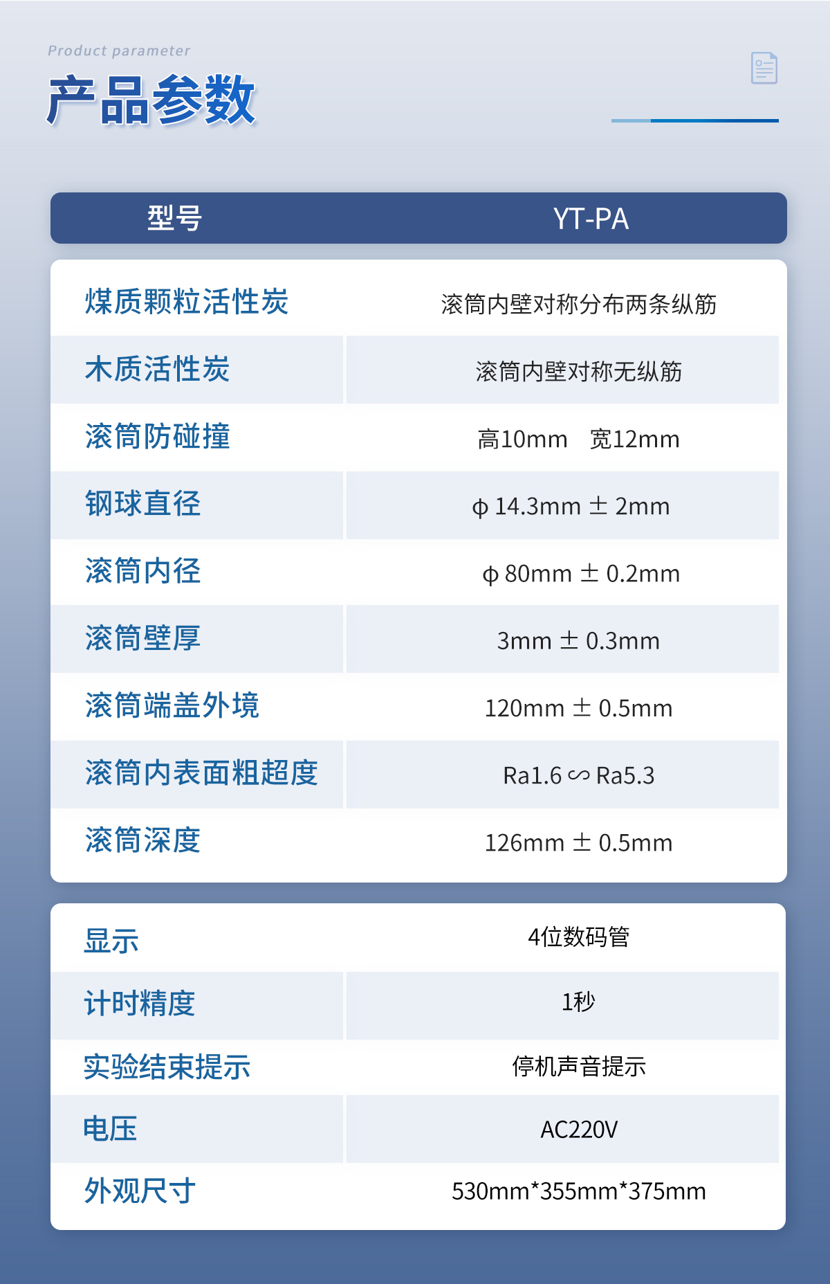 活性炭強度測定儀 YT-HTQ 技術(shù)參數(shù):