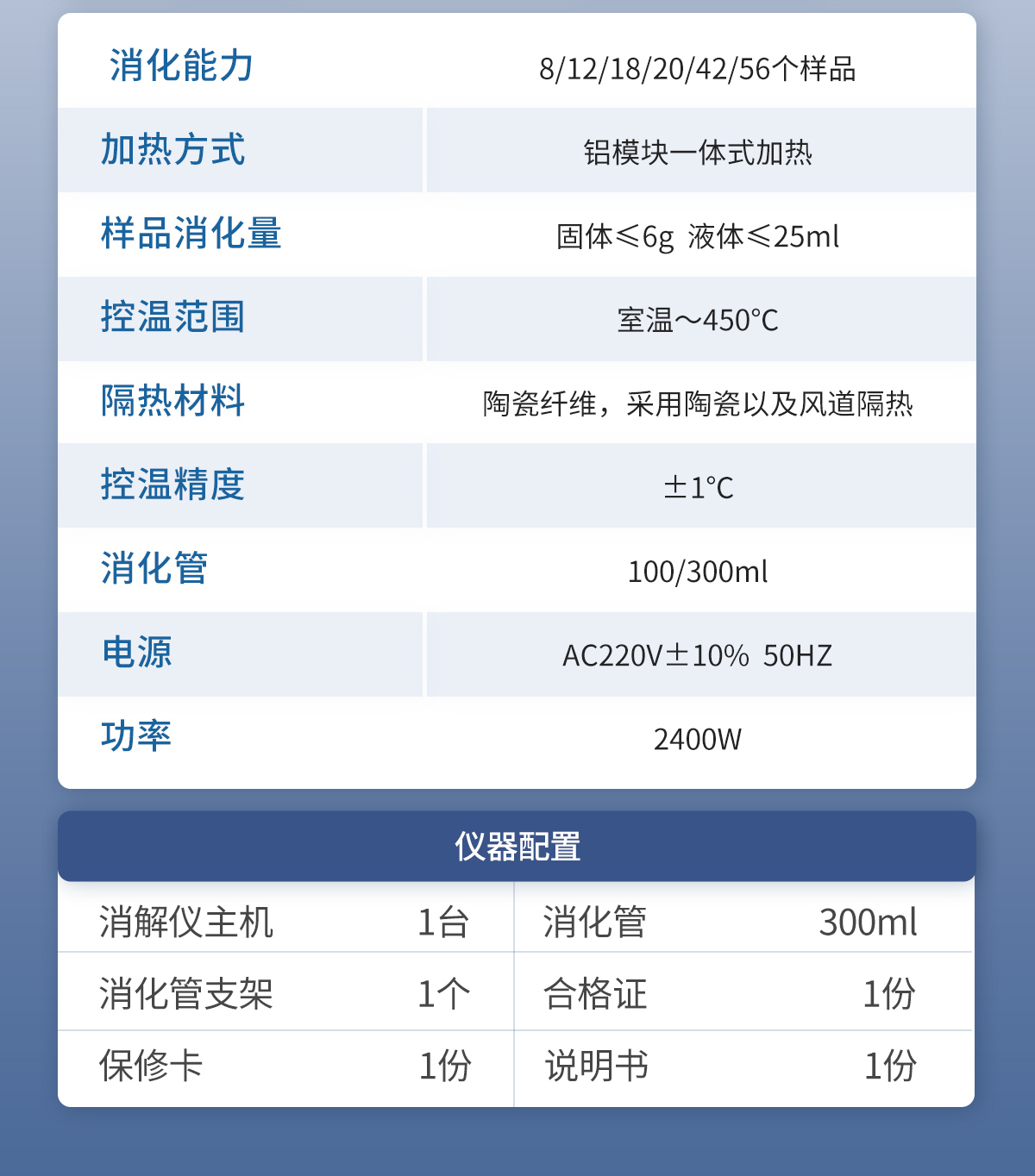 3. 樣品消化量:固體≤6g  液體≤25ml