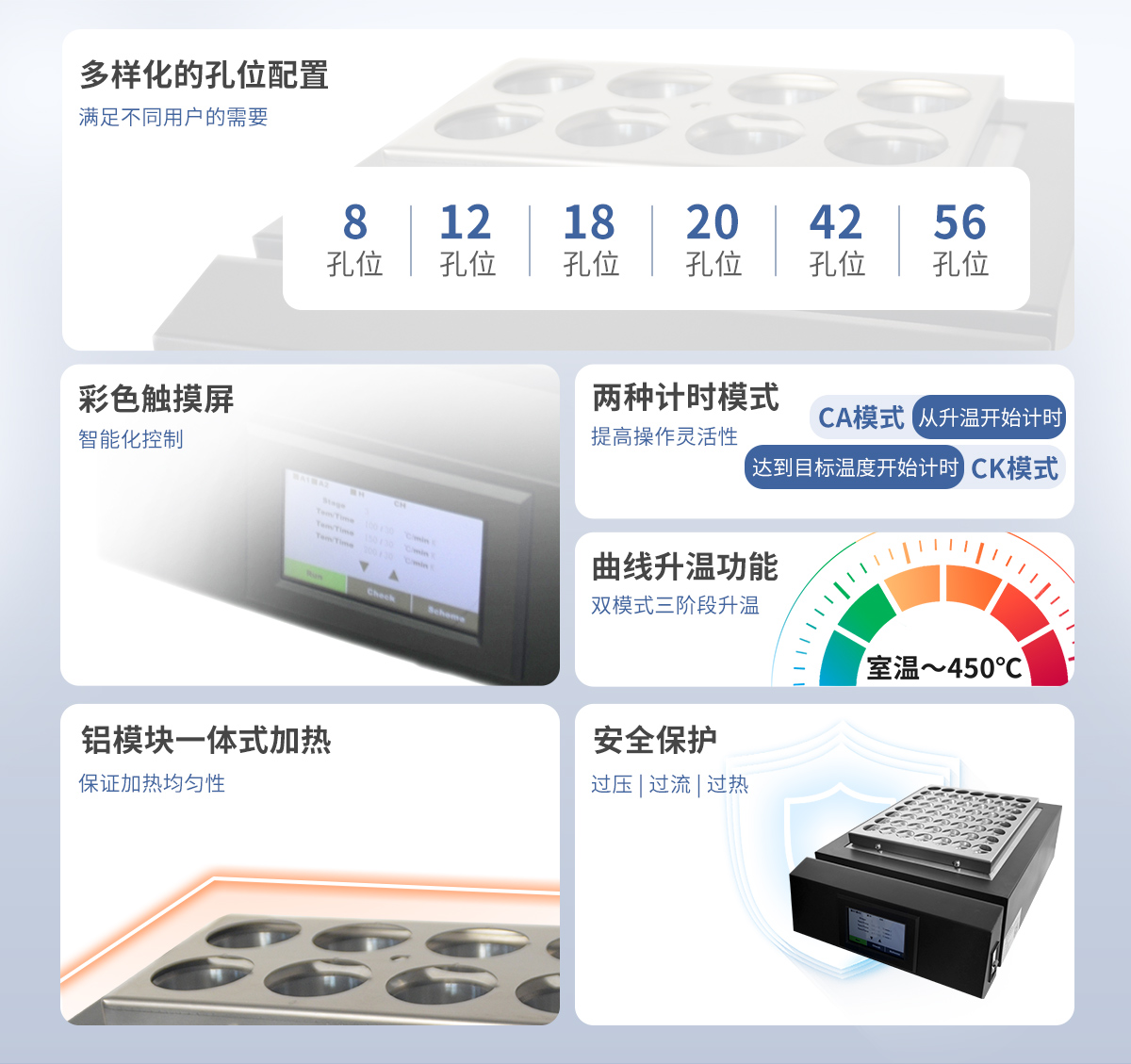 鋁模塊自動(dòng)消化裝置 YT-SX08/SX12/SX18/SX20/SX42/S56 功能特點(diǎn):