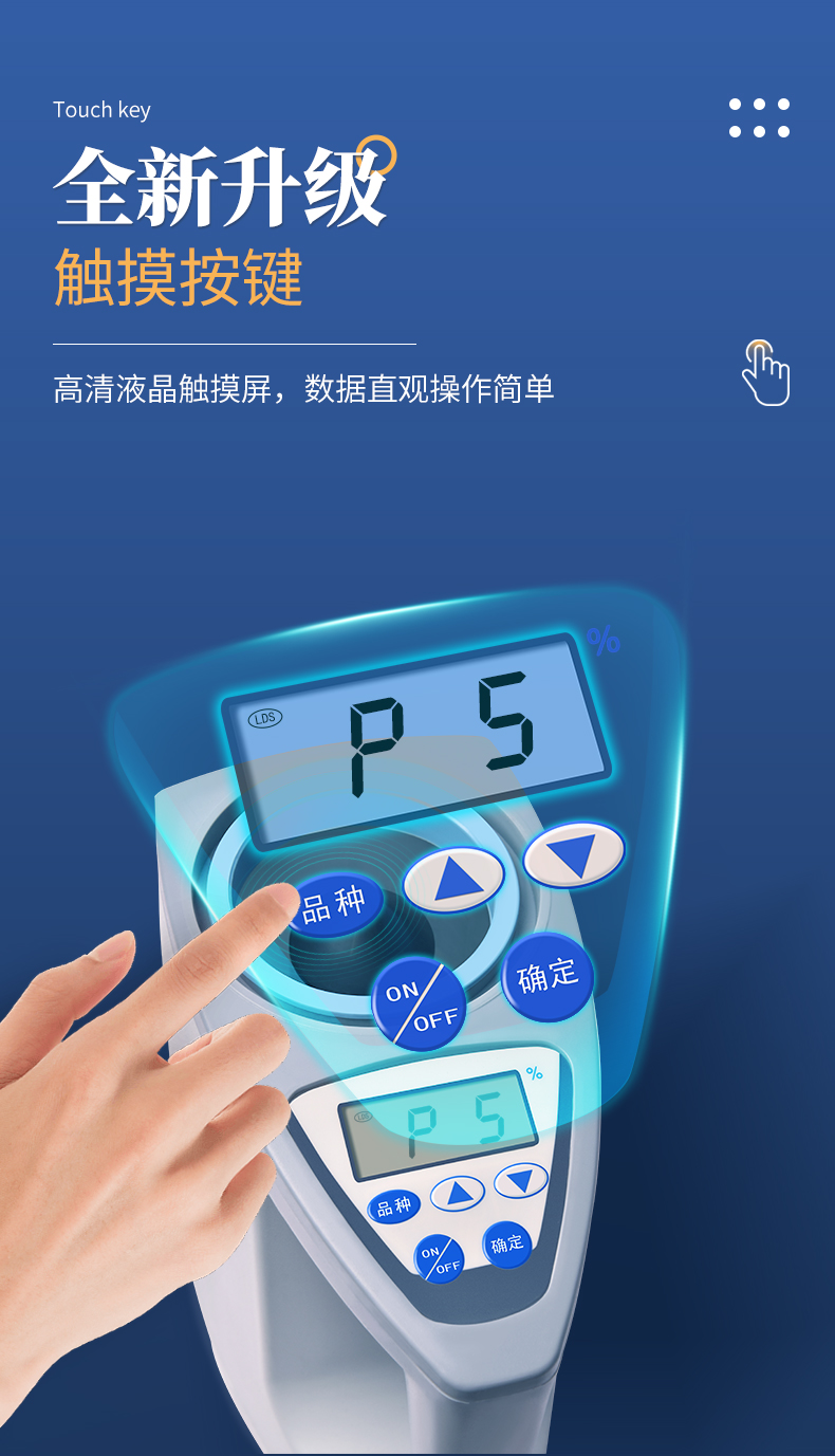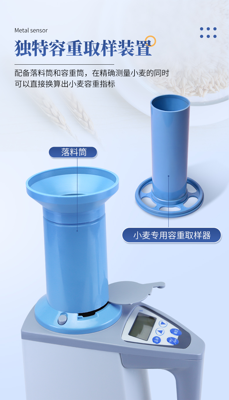 | 容重?fù)Q算:獨(dú)特的專利容重取樣裝置在**測(cè)量小麥的同時(shí),可以直接換算出小麥容重指標(biāo)。 | 測(cè)量范圍:可測(cè)量谷類、玉米、東北玉米、大麥、小麥、白小麥、大米、豆粕、花生仁、菜粕、高粱、黑芝麻、棉籽、棉粕、秈谷、大豆、油菜籽、飼料、蔬菜種子等非金屬顆粒狀物質(zhì)。 | 快速準(zhǔn)確:數(shù)秒內(nèi)即可顯示結(jié)果,測(cè)量誤差≤±0.5℅ | 操作簡單:20個(gè)常見品種已預(yù)先定標(biāo),不需秤樣、用料簡取樣后可立即測(cè)量水分 | 水分測(cè)量范圍:3-35℅ | 使用環(huán)境溫度:0~40℃ | 溫度補(bǔ)償:自動(dòng) | 定 標(biāo):浮動(dòng)四點(diǎn)定標(biāo),品種不限(常見品種20個(gè)已預(yù)先定標(biāo),可直接測(cè)量) | 工作電源,直流6V(5號(hào)干電池四節(jié)) | 自動(dòng)關(guān)機(jī):超過三分鐘無操作自動(dòng)關(guān)機(jī)。 | 便攜方便:重約1千克、外型小巧、電源交直流二用,適合各種工作場(chǎng)合 | 適合國情:用戶可對(duì)本地特殊品種采用本機(jī)獨(dú)創(chuàng)的四點(diǎn)定標(biāo)法自行定標(biāo),自行修正水分值 | 高性價(jià)比:技術(shù)含量高,性能**而價(jià)格相比同類產(chǎn)品較低。 |