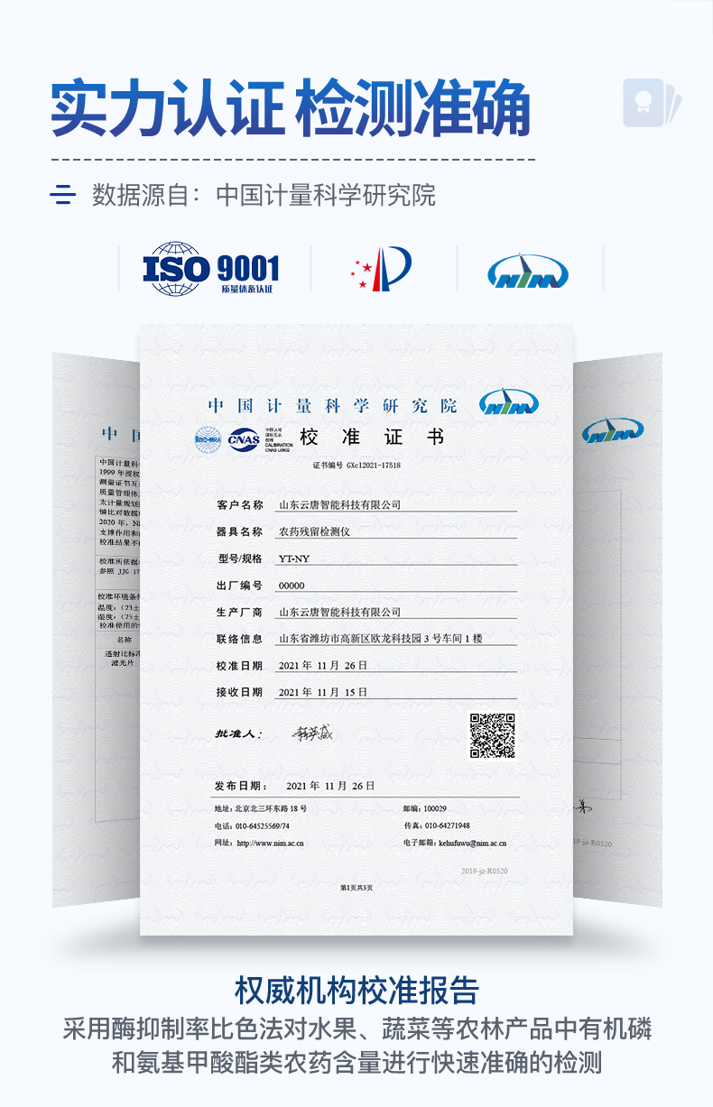 檢測(cè)標(biāo)準(zhǔn):依據(jù)國(guó)家標(biāo)準(zhǔn)方法(GB/T5009.199-2003)以及世界衛(wèi)生組織WHO、世界糧農(nóng)組織FAO殘留農(nóng)藥檢測(cè)標(biāo)準(zhǔn)、世界環(huán)境保護(hù)局EPA參照攝入量等要求來(lái)設(shè)計(jì)。采用酶抑制率比色法對(duì)水果、蔬菜等農(nóng)林產(chǎn)品中有機(jī)磷和氨基甲酸酯類(lèi)農(nóng)藥含量進(jìn)行快速準(zhǔn)確的檢測(cè),乙酰膽堿酯酶和丁酰膽堿酯酶試劑均可以使用,符合國(guó)家標(biāo)準(zhǔn)和農(nóng)業(yè)部標(biāo)準(zhǔn)的要求。