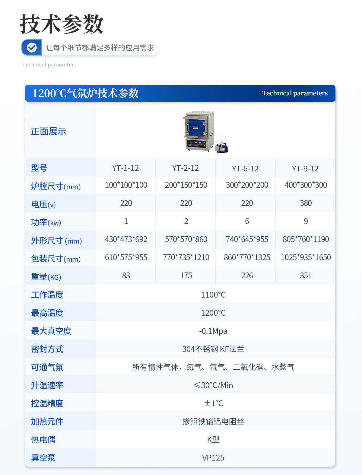 | 型號(hào) | **溫度(℃) | 爐膛尺寸(mm) | 輸入電源/功率(V/KW) | 包裝尺寸+重量 |