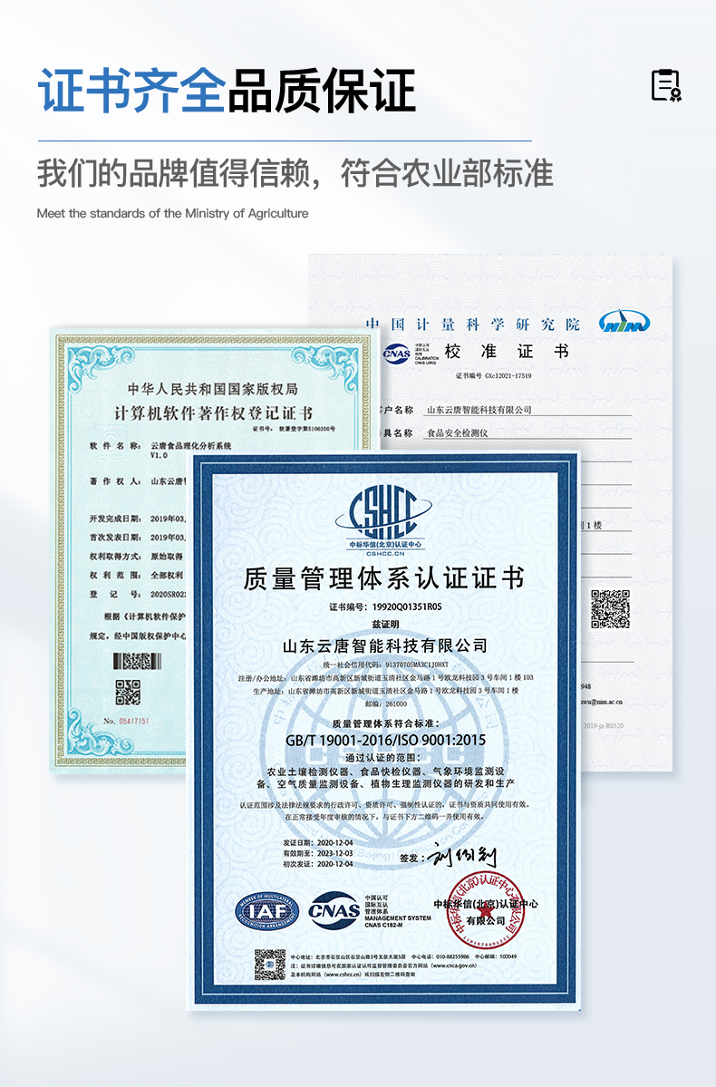 | 安卓智能操作系統(tǒng),采用更加**和人性化操作,儀器具有網(wǎng)線(xiàn)連接、wifi聯(lián)網(wǎng)上傳、GPRS無(wú)線(xiàn)遠(yuǎn)傳功能,快速上傳數(shù)據(jù)。 | 智能化程度高,儀器具有自檢功能:具有開(kāi)機(jī)自檢和調(diào)零功能,具有自動(dòng)檢測(cè)重復(fù)性功能。 | 檢測(cè)通道:≥12個(gè)檢測(cè)通道,可以同時(shí)測(cè)試多個(gè)樣品,每個(gè)樣品由程序控制分別獨(dú)立工作,不會(huì)互相干擾。 | 顯示方式:≥8英寸液晶觸摸屏顯示,人性化中文操作界面,讀數(shù)直觀(guān)、簡(jiǎn)單。 | 配備新一代嵌入式熱敏打印機(jī),可選擇手動(dòng)打印或者自動(dòng)打印,檢測(cè)完成可自動(dòng)打印檢測(cè)報(bào)告和二維碼。 | 光源采用進(jìn)口超高亮發(fā)光二極管,高精度、穩(wěn)定性強(qiáng)、光源可控、可以關(guān)掉不使用的光源,功耗更低。 | 采用USB2.0接口設(shè)計(jì),方便數(shù)據(jù)的存貯和移動(dòng),并可隨時(shí)與計(jì)算機(jī)直接相連,并且可用計(jì)算機(jī)控制儀器。實(shí)現(xiàn)數(shù)據(jù)查詢(xún)、瀏覽、分析、統(tǒng)計(jì)、打印等。 | 儀器帶有監(jiān)管平臺(tái)。數(shù)據(jù)可局域網(wǎng)和互聯(lián)網(wǎng)數(shù)據(jù)上傳,檢測(cè)結(jié)果直接傳至食品安全監(jiān)管平臺(tái)。進(jìn)行區(qū)域食品安全監(jiān)管及大數(shù)據(jù)分析處理,檢測(cè)區(qū)域食品安全長(zhǎng)短期動(dòng)態(tài),達(dá)到食品安全問(wèn)題預(yù)估、預(yù)警 | 一體化便攜式快檢設(shè)備,滿(mǎn)足現(xiàn)場(chǎng)及流動(dòng)檢測(cè)使用需求,能夠在同一軟件下實(shí)現(xiàn)所有檢測(cè)項(xiàng)目的檢測(cè),并可通過(guò)同一窗口直觀(guān)顯示檢測(cè)結(jié)果。 | 儀器具有多品類(lèi)多種類(lèi)樣品菜單庫(kù),可靈活選擇檢測(cè)樣品,不同的檢測(cè)通道可同時(shí)檢測(cè)不同的樣品項(xiàng)目。也可在儀器上直接編輯錄入樣品名稱(chēng)、檢測(cè)指標(biāo)、送檢單位等信息并保存進(jìn)樣品數(shù)據(jù)庫(kù)。 | 樣品處理簡(jiǎn)單省力,整體操作快速、安全、便捷。 | 儀器具有自身保護(hù)功能,可設(shè)置用戶(hù)名及密碼,防止非工作人員操作等。 | 高靈敏度,高檢測(cè)精度,高重復(fù)性精度,掃描式高精度光學(xué)傳感器。 | 內(nèi)置強(qiáng)大的數(shù)據(jù)庫(kù),可在儀器上直接選擇樣品名稱(chēng)、檢測(cè)指標(biāo)、送檢單位等信息,也可在儀器上直接編輯錄入樣品名稱(chēng)、檢測(cè)指標(biāo)、送檢單位等信息并保存進(jìn)樣品數(shù)據(jù)庫(kù)。 | 儀器具有重新校準(zhǔn)、鎖定、恢復(fù)出廠(chǎng)設(shè)置功能。 | 支持U盤(pán)存儲(chǔ)。 結(jié)果判定線(xiàn)可修改,對(duì)照值標(biāo)定值可保存,斷電不丟失數(shù)據(jù)。 |