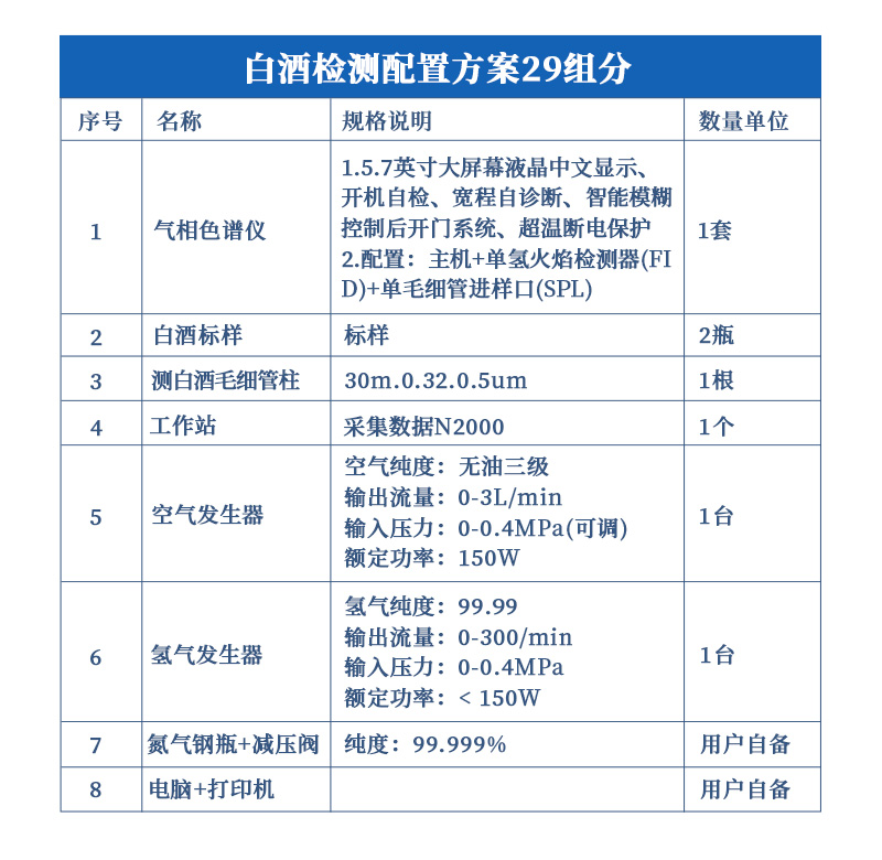 | 氫火焰離子化檢測(cè)器(FID) | ● 檢測(cè)限:Mt≤2×10-12g/s (正十六烷); | ● 噪音:≤2×10-14A(0.02mv) | ● 漂移:≤1.5×10-13A/30min(0.15mv/0.5h) | ● 線性范圍: ≥107 | ● **使用溫度:≤450℃ | 熱導(dǎo)檢測(cè)器(TCD) | ● 靈敏度:S≥10000mV.ml/mg(正十六烷) | ● 噪聲:≤20μV | ● 基線漂移:≤150μv/30min | 電子捕獲檢測(cè)器(ECD) | ● 檢測(cè)限:≤1×10-14g/ml | ● 線性范圍:104 | ● 放射源:63Ni | 火焰光度檢測(cè)器(FPD) | ● 檢測(cè)限:(P)≤1×10-12g/s;(S)≤1×10-12g/s | ● 線性范圍:105(P) 103(S) | 氮磷檢測(cè)器(NPD) | ● 檢測(cè)限:(N)≤5×10-13g/s;(S)≤5×10-13g/s |