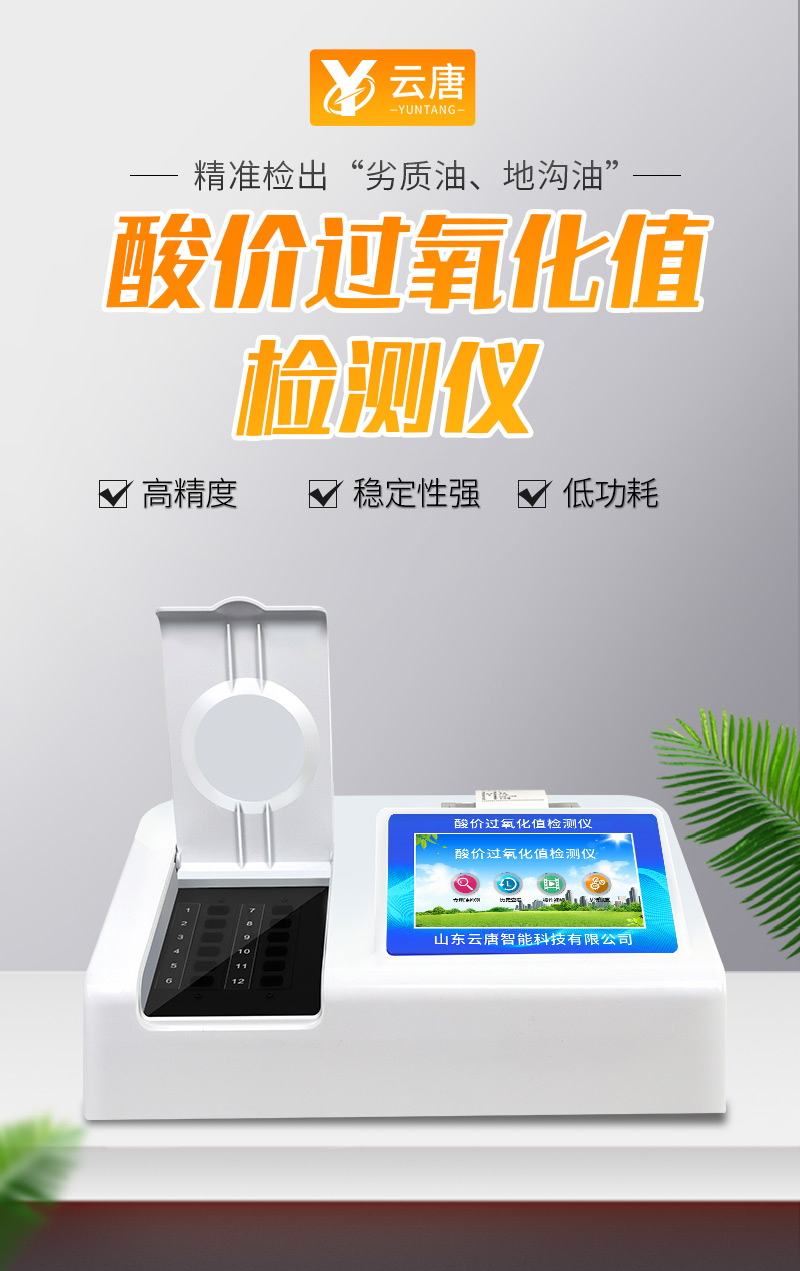食用油過氧化值檢測儀為集成化油品快速檢測分析設(shè)備,能夠快速檢測食用植物油、食用豬油、花生油、葵花油、米糠油、食品、肉制品中的過氧化值含量;通過檢測可確定植物油是否符合國家標(biāo)準(zhǔn)或是否為劣質(zhì)油、地溝油等。儀器預(yù)留其他項(xiàng)目檢測程序和端口,根據(jù)日后需求可方便的自主增加檢測項(xiàng)目。日后可升級為檢測水產(chǎn)品、面制品的綜合類型儀器。