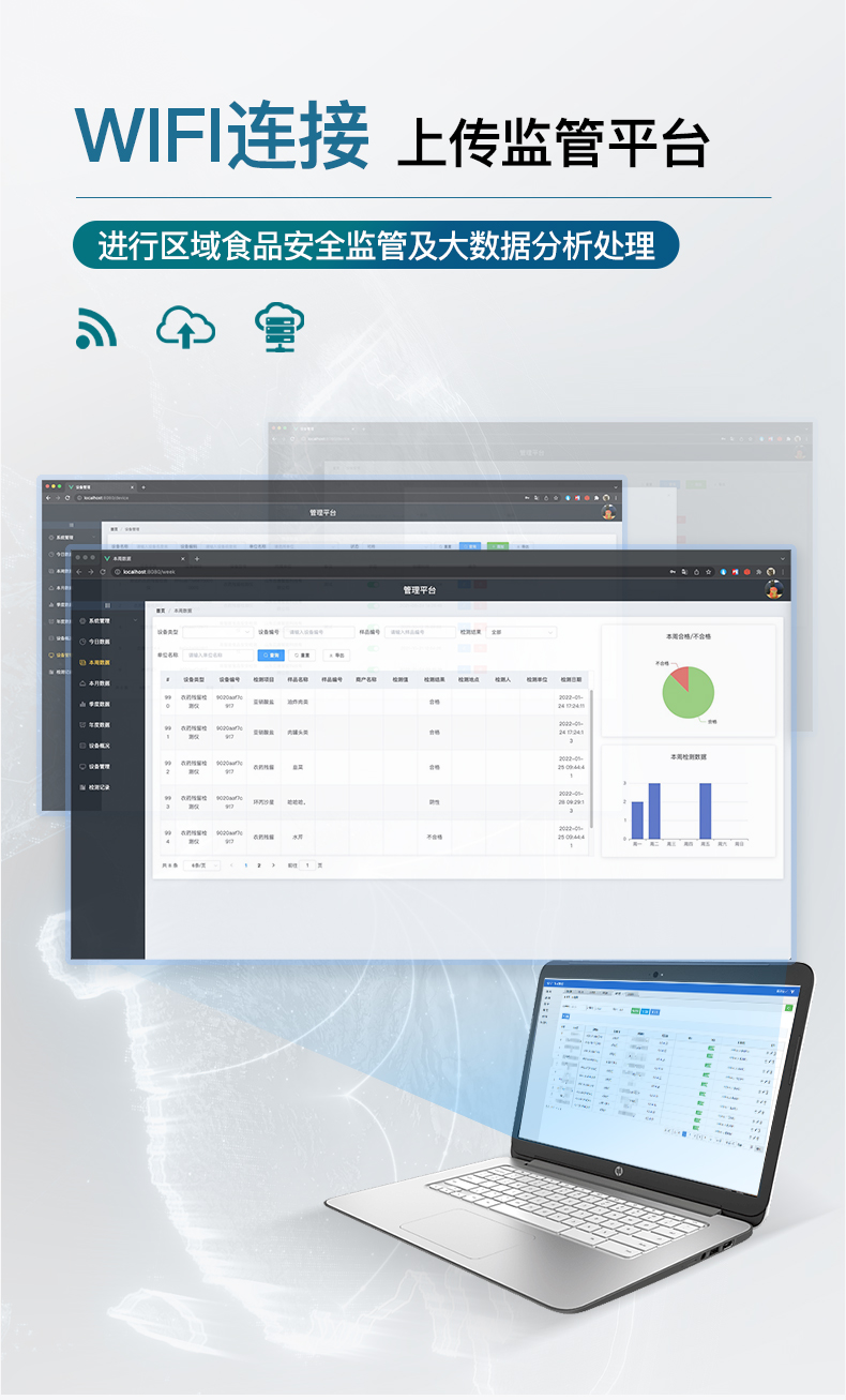 | 1、儀器采用臺式一體化系統(tǒng)檢測技術(shù),將分光光度模塊、膠體金檢測模塊、新型農(nóng)殘檢測模塊、數(shù)字化管理模塊、無線通訊模塊高度集成于一體,支持檢測200種食品安全檢測項目,同時預(yù)留升級檢測方法。 | 2、儀器檢測模塊標(biāo)準(zhǔn)化、智能化,檢測項目可隨意自由組合。檢測箱體內(nèi)置多個標(biāo)準(zhǔn)檢測單元,檢測模塊可以調(diào)整配置。 | 3、顯示屏幕:儀器采用10.1英寸豎向液晶觸摸屏顯,搭配運行安卓智能操作系統(tǒng),主控芯片采用ARM Cortex-A7,RK3288/4核處理器,主頻1.88Ghz,操作方便,性能更強。 | 4、檢測通道:≥12通道;采用精密旋轉(zhuǎn)比色池設(shè)計,使用同芯片同光源校準(zhǔn)精度,解決不同光源之間的誤差值,更加準(zhǔn)確**。(1-12通道間誤差0.1%,***:**202022821055.2) | 5、儀器光源:高精度進口四波長冷光源,每個通道均配置 410、520、590、630nm 波長光源,標(biāo)配**的光路切換裝置,專利光路切換功能可實現(xiàn)64波長,并且所有檢測項目可實現(xiàn)所有通道同時檢測。 | 6、設(shè)備可一鍵校準(zhǔn),自動保存校準(zhǔn)數(shù)據(jù),自動對比校驗,得到精準(zhǔn)光源,采用Android SP存儲數(shù)據(jù),光源數(shù)據(jù)永不丟失,方便每一次使用。 | 7、通訊接口:配備無線通信模塊、4G(APN)通訊模塊、藍牙傳輸,同時具有雙USB接口以及RJ45網(wǎng)線接口,可以多方式實現(xiàn)數(shù)據(jù)保存及數(shù)據(jù)傳輸。 | 8、存儲方式:支持U盤存儲,標(biāo)準(zhǔn)USB接口,免驅(qū)動安裝。檢測結(jié)果存儲容量20萬條以上,可生成Excel表格進行拷貝,并具有登錄保護功能。 | 9、智能化操作系統(tǒng): | 9.1、操作系統(tǒng):儀器可在同一檢測界面自動對應(yīng)相關(guān)檢測通道,一次性選擇1-12個樣品名稱,無需退出界面,節(jié)省操作時間。并可以對每個通道屬性和樣品信息單獨進行編輯,例如送檢單位、人員,檢測人員等,打印時勾選打印顯示。 | 9.2、數(shù)據(jù)集成系統(tǒng):設(shè)備首頁自動匯總分析檢測數(shù)據(jù),包含:周檢測數(shù)據(jù)、月檢測數(shù)據(jù),全部檢測總數(shù)量,均包含檢測總數(shù),合格數(shù),不合格數(shù),以及相關(guān)柱形分析圖,各項檢測數(shù)據(jù)一目了然,無需電腦查詢,更加快捷直觀。 | 9.3、數(shù)據(jù)庫系統(tǒng):十幾項數(shù)據(jù)庫分類管理儀器:包含項目類型、項目數(shù)據(jù)、檢測數(shù)據(jù)、歷史記錄、國標(biāo)信息、曲線信息、采樣信息、檢測信息、受檢信息、復(fù)核信息、圖表信息、光源校準(zhǔn)信息、打印樣式信息、樣品庫信息等等,數(shù)據(jù)庫之間互相協(xié)調(diào)聯(lián)動保證數(shù)據(jù)的真實完整性。同時產(chǎn)品數(shù)據(jù)庫以及歷史檢測記錄支持一鍵檢索功能。 | 9.4、限量規(guī)判系統(tǒng):具有限量查詢、添加物質(zhì)合規(guī)判定系統(tǒng)。檢測出結(jié)果后,系統(tǒng)自動調(diào)用系統(tǒng)數(shù)據(jù)庫中相關(guān)國標(biāo)進行比對判定,客觀顯示判定結(jié)果是否合格。 | 9.5、項目預(yù)設(shè)系統(tǒng):儀器具有任務(wù)預(yù)設(shè)模塊,一鍵提前預(yù)設(shè),給出方便快捷的新檢測方案,每一個任務(wù)分別可以設(shè)置不同的樣品、批次、編號、來源、備注、抽樣信息、檢測信息、受檢信息、復(fù)核信息等更多信息。樣品送檢時一鍵調(diào)取保存信息,并可多次調(diào)取,大大提高檢測效率。 | 9.6、數(shù)據(jù)監(jiān)管系統(tǒng):同步對接監(jiān)管平臺,數(shù)據(jù)可局域網(wǎng)和互聯(lián)網(wǎng)數(shù)據(jù)上傳,檢測結(jié)果可選擇直接傳至食品安全監(jiān)管平臺。進行區(qū)域食品安全監(jiān)管及大數(shù)據(jù)分析處理與數(shù)據(jù)統(tǒng)計,檢測區(qū)域食品安全長短期動態(tài),達到食品安全問題預(yù)估、預(yù)警。 | 9.7.1、全新打印系統(tǒng):內(nèi)置全新打印機,新創(chuàng)自定義打印方式,可按需靈活勾選控制:產(chǎn)品合格證(國家農(nóng)業(yè)部標(biāo)準(zhǔn)要求),二維碼,抽樣信息、檢測信息,受檢信息、復(fù)核信息、抽樣日期、檢測日期等信息的打印。 | 9.7.2、A4紙版本報告打印功能(選配):設(shè)備擁有兩種結(jié)果展示方式,可以自動生成A4打印模板和小票打印模板兩種樣式,可通過WiFi及網(wǎng)線等方式鏈接外置打印機可進行打印。 | 10、供電模式:儀器交直流兩用,直流12V供電,可連接車載電源,可配6ah大容量充電鋰電池,電量可實時顯示,方便戶外流動測試。 | 11、膠體金檢測模塊:采用單通道CMOS成像處理技術(shù)及膠體金免疫層析技術(shù),可讀取膠體金卡數(shù)據(jù),自動采集、處理分析,將檢測結(jié)果顯示,并可根據(jù)參考限值自動判斷檢測結(jié)果,可檢測常見的獸藥殘留、生物毒素、抗生素、違禁添加物等。 | 11.1、探測技術(shù):CMOS成像探測; | 11.2、檢測通道:1個通道; | 11.3、檢測方式:消線法和比色法; | 11.4、顯示模式:陰性或陽性; | 11.5、曲線形式:直插式掃描方式,顯示金標(biāo)卡圖像,實時生成、識別CT曲線圖,無需手動調(diào)整,完成檢測后自動退出檢測卡。兼容市場上其他金標(biāo)卡,使用耗材不受限制。 | 12、儀器具備遠程升級功能,可定向分客戶分儀器更新,開機后自動更新,并可持續(xù)性免費更新系統(tǒng)版本,無需像傳統(tǒng)產(chǎn)