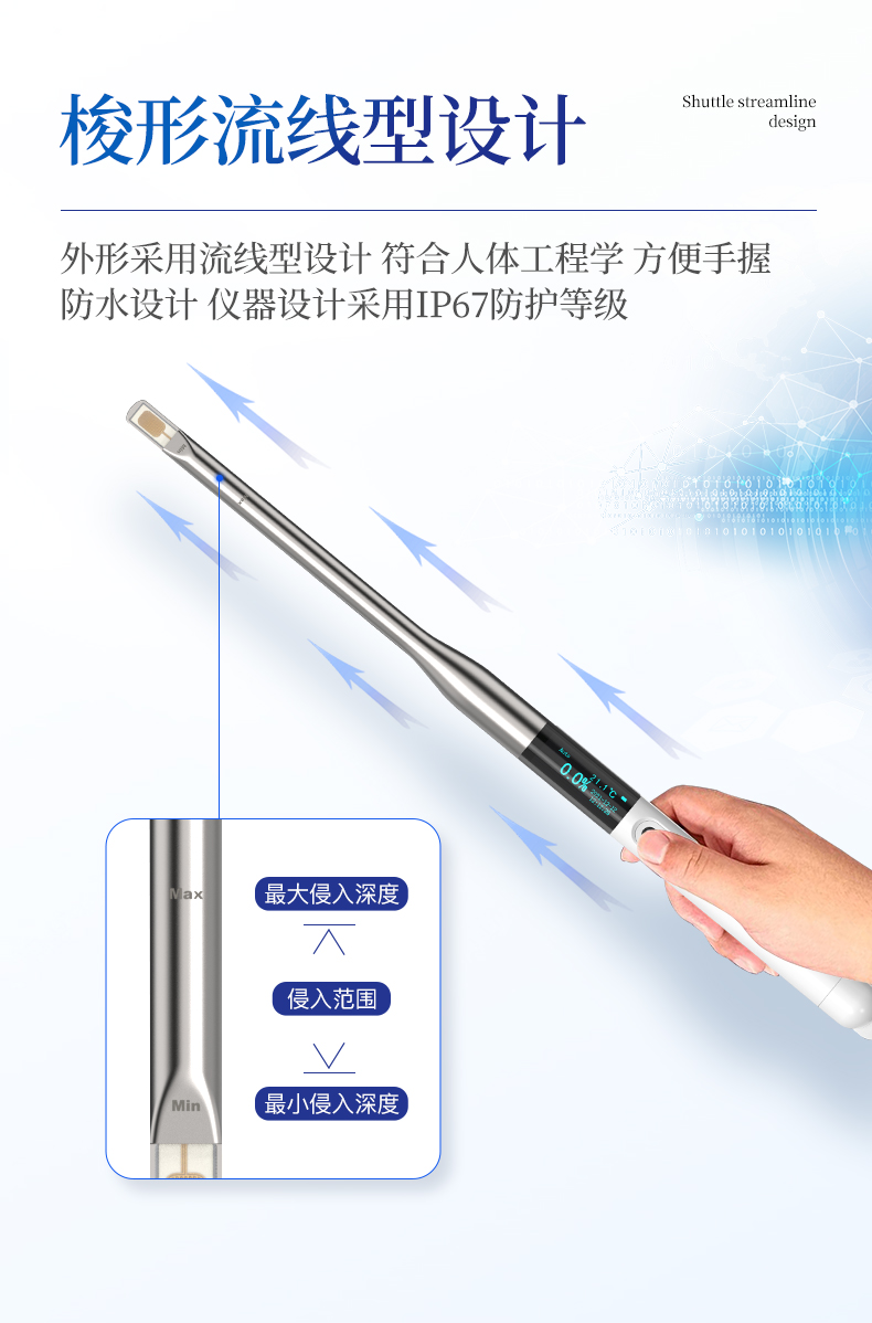 ■探頭外形采用梭形流線型設計,減少測試完成后存液掛液,同時利于擦拭清洗