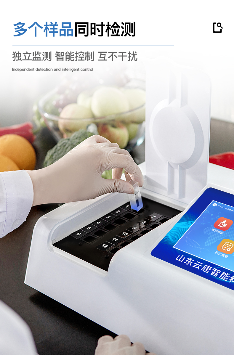 安卓智能操作系統(tǒng),采用更加**和人性化操作,儀器具有網(wǎng)線連接、wifi聯(lián)網(wǎng)上傳、GPRS無線遠傳功能,快速上傳數(shù)據(jù)。智能化程度高,儀器具有自檢功能:具有開機自檢和調零功能,具有自動檢測重復性功能。檢測通道:≥12個檢測通道,可以同時測試多個樣品,每個樣品由程序控制分別獨立工作,不會互相干擾。顯示方式:≥8英寸液晶觸摸屏顯示,人性化中文操作界面,讀數(shù)直觀、簡單。配備新一代嵌入式熱敏打印機,可選擇手動打印或者自動打印,檢測完成可自動打印檢測報告和二維碼。光源采用進口超高亮發(fā)光二極管,高精度、穩(wěn)定性強、光源可控、可以關掉不使用的光源,功耗更低。采用USB2.0接口設計,方便數(shù)據(jù)的存貯和移動,并可隨時與計算機直接相連,并且可用計算機控制儀器。實現(xiàn)數(shù)據(jù)查詢、瀏覽、分析、統(tǒng)計、打印等。儀器帶有監(jiān)管平臺。數(shù)據(jù)可局域網(wǎng)和互聯(lián)網(wǎng)數(shù)據(jù)上傳,檢測結果直接傳至食品安全監(jiān)管平臺。進行區(qū)域食品安全監(jiān)管及大數(shù)據(jù)分析處理,檢測區(qū)域食品安全長短期動態(tài),達到食品安全問題預估、預警一體化便攜式快檢設備,滿足現(xiàn)場及流動檢測使用需求,能夠在同一軟件下實現(xiàn)所有檢測項目的檢測,并可通過同一窗口直觀顯示檢測結果。儀器具有多品類多種類樣品菜單庫,可靈活選擇檢測樣品,不同的檢測通道可同時檢測不同的樣品項目。也可在儀器上直接編輯錄入樣品名稱、檢測指標、送檢單位等信息并保存進樣品數(shù)據(jù)庫。樣品處理簡單省力,整體操作快速、安全、便捷。儀器具有自身保護功能,可設置用戶名及密碼,防止非工作人員操作等。高靈敏度,高檢測精度,高重復性精度,掃描式高精度光學傳感器。內置強大的數(shù)據(jù)庫,可在儀器上直接選擇樣品名稱、檢測指標、送檢單位等信息,也可在儀器上直接編輯錄入樣品名稱、檢測指標、送檢單位等信息并保存進樣品數(shù)據(jù)庫。儀器具有重新校準、鎖定、恢復出廠設置功能。支持U盤存儲。 結果判定線可修改,對照值標定值可保存,斷電不丟失數(shù)據(jù)。