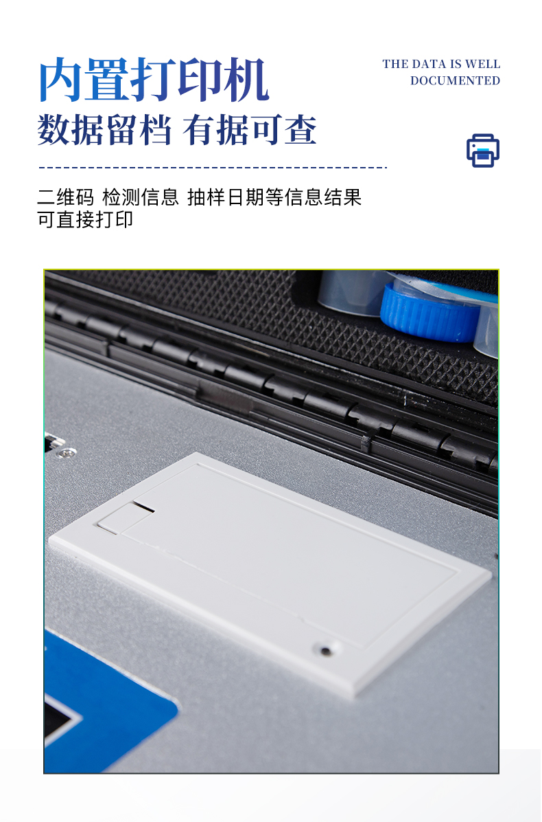 | 儀器采用手提式一體化系統(tǒng)檢測技術(shù),將分光光度模塊、新型農(nóng)殘檢測模塊、數(shù)字化管理模塊、無線通訊模塊高度集成于一體,支持檢測200種食品安全檢測項(xiàng)目,同時(shí)預(yù)留升級檢測方法。 | 儀器檢測模塊標(biāo)準(zhǔn)化、智能化,檢測項(xiàng)目可隨意自由組合。檢測箱體內(nèi)置多個(gè)標(biāo)準(zhǔn)檢測單元,檢測模塊可以調(diào)整配置。 | 顯示屏幕:儀器采用10.1英寸豎向液晶觸摸屏顯,搭配運(yùn)行安卓智能操作系統(tǒng),主控芯片采用ARM Cortex-A7,RK3288/4核處理器,主頻1.88Ghz,操作方便,性能更強(qiáng)。 | 檢測通道:≥12通道;采用精密旋轉(zhuǎn)比色池設(shè)計(jì),使用同芯片同光源校準(zhǔn)精度,解決不同光源之間的誤差值,更加準(zhǔn)確**。(1-12通道間誤差0.1%,***:**202022821055.2) | 儀器光源:高精度進(jìn)口四波長冷光源,每個(gè)通道均配置 410、520、590、630nm 波長光源,標(biāo)配**的光路切換裝置,專利光路切換功能可實(shí)現(xiàn)64波長,并且所有檢測項(xiàng)目可實(shí)現(xiàn)所有通道同時(shí)檢測。 | 設(shè)備可一鍵校準(zhǔn),自動保存校準(zhǔn)數(shù)據(jù),自動對比校驗(yàn),得到精準(zhǔn)光源,采用Android SP存儲數(shù)據(jù),光源數(shù)據(jù)永不丟失,方便每一次使用。 | 通訊接口:配備無線通信模塊、4G(APN)通訊模塊、藍(lán)牙傳輸,同時(shí)具有雙USB接口以及RJ45網(wǎng)線接口,可以多方式實(shí)現(xiàn)數(shù)據(jù)保存及數(shù)據(jù)傳輸 | 存儲方式:支持U盤存儲,標(biāo)準(zhǔn)USB接口,免驅(qū)動安裝。檢測結(jié)果存儲容量20萬條以上,可生成Excel表格進(jìn)行拷貝,并具有登錄保護(hù)功能。 | 智能化操作系統(tǒng): | 1)操作系統(tǒng):儀器可在同一檢測界面自動對應(yīng)相關(guān)檢測通道,一次性選擇1-12個(gè)樣品名稱,無需退出界面,節(jié)省操作時(shí)間。并可以對每個(gè)通道屬性和樣品信息單獨(dú)進(jìn)行編輯,例如送檢單位、人員,檢測人員等,打印時(shí)勾選打印顯示。 | 2)數(shù)據(jù)集成系統(tǒng):設(shè)備首頁自動匯總分析檢測數(shù)據(jù),包含:周檢測數(shù)據(jù)、月檢測數(shù)據(jù),全部檢測總數(shù)量,均包含檢測總數(shù),合格數(shù),不合格數(shù),以及相關(guān)柱形分析圖,各項(xiàng)檢測數(shù)據(jù)一目了然,無需電腦查詢,更加快捷直觀。 | 3)數(shù)據(jù)庫系統(tǒng):十幾項(xiàng)數(shù)據(jù)庫分類管理儀器:包含項(xiàng)目類型、項(xiàng)目數(shù)據(jù)、檢測數(shù)據(jù)、歷史記錄、國標(biāo)信息、曲線信息、采樣信息、檢測信息、受檢信息、復(fù)核信息、圖表信息、光源校準(zhǔn)信息、打印樣式信息、樣品庫信息等等,數(shù)據(jù)庫之間互相協(xié)調(diào)聯(lián)動保證數(shù)據(jù)的真實(shí)完整性。同時(shí)產(chǎn)品數(shù)據(jù)庫以及歷史檢測記錄支持一鍵檢索功能。 | 4)限量規(guī)判系統(tǒng):具有限量查詢、添加物質(zhì)合規(guī)判定系統(tǒng)。檢測出結(jié)果后,系統(tǒng)自動調(diào)用系統(tǒng)數(shù)據(jù)庫中相關(guān)國標(biāo)進(jìn)行比對判定,客觀顯示判定結(jié)果是否合格。 | 5)項(xiàng)目預(yù)設(shè)系統(tǒng):儀器具有任務(wù)預(yù)設(shè)模塊,一鍵提前預(yù)設(shè),給出方便快捷的新檢測方案,每一個(gè)任務(wù)分別可以設(shè)置不同的樣品、批次、編號、來源、備注、抽樣信息、檢測信息、受檢信息、復(fù)核信息等更多信息。樣品送檢時(shí)一鍵調(diào)取保存信息,并可多次調(diào)取,大大提高檢測效率。 | 6)數(shù)據(jù)監(jiān)管系統(tǒng):同步對接監(jiān)管平臺,數(shù)據(jù)可局域網(wǎng)和互聯(lián)網(wǎng)數(shù)據(jù)上傳,檢測結(jié)果可選擇直接傳至食品安全監(jiān)管平臺。進(jìn)行區(qū)域食品安全監(jiān)管及大數(shù)據(jù)分析處理與數(shù)據(jù)統(tǒng)計(jì),檢測區(qū)域食品安全長短期動態(tài),達(dá)到食品安全問題預(yù)估、預(yù)警。 | 7)打印系統(tǒng):內(nèi)置全新打印機(jī),新創(chuàng)自定義打印方式,可按需靈活勾選控制:產(chǎn)品合格證(國家農(nóng)業(yè)部標(biāo)準(zhǔn)要求),二維碼,抽樣信息、檢測信息,受檢信息、復(fù)核信息、抽樣日期、檢測日期等信息的打印。 | 供電模式:儀器交直流兩用,直流12V供電,可連接車載電源,可配6ah大容量充電鋰電池,電量可實(shí)時(shí)顯示,方便戶外流動測試。 | 膠體金檢測模塊:采用雙通道CMOS成像處理技術(shù)及膠體金免疫層析技術(shù),可同時(shí)讀取雙膠體金卡數(shù)據(jù),自動采集、處理分析,將檢測結(jié)果顯示,并可根據(jù)參考限值自動判斷檢測結(jié)果,可檢測常見的獸藥殘留、生物毒素、抗生素、違禁添加物等。 | 1)探測技術(shù):CMOS成像探測; | 2)檢測通道:1個(gè)通道; | 3)檢測方式:消線法和比色法; | 4)顯示模式:陰性或陽性; | 5)曲線形式:軌道式掃描方式,顯示金標(biāo)卡圖像,實(shí)時(shí)生成、識別CT曲線圖,無需手動調(diào)整,完成檢測后自動退出檢測卡。兼容市場上其他金標(biāo)卡,使用耗材不受限制。 | 儀器加入遠(yuǎn)程升級功能,可定向分客戶分儀器更新,開機(jī)后自動更新,客戶無需任何操作,即可升級全新項(xiàng)目。做到了無需退換機(jī)器即可實(shí)現(xiàn)實(shí)時(shí)遠(yuǎn)程升級檢測儀