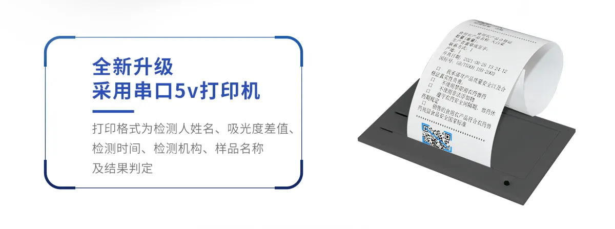 | 儀器采用手提式一體化系統(tǒng)檢測技術(shù),將分光光度模塊、膠體金檢測模塊、新型農(nóng)殘檢測模塊、數(shù)字化管理模塊、無線通訊模塊高度集成于一體,支持檢測200種食品安全檢測項目,同時預(yù)留升級檢測方法。 | 儀器檢測模塊標(biāo)準(zhǔn)化、智能化,檢測項目可隨意自由組合。檢測箱體內(nèi)置多個標(biāo)準(zhǔn)檢測單元,檢測模塊可以調(diào)整配置。 | 顯示屏幕:儀器采用10.1英寸豎向液晶觸摸屏顯,搭配運行安卓智能操作系統(tǒng),主控芯片采用ARM Cortex-A7,RK3288/4核處理器,主頻1.88Ghz,操作方便,性能更強(qiáng)。 | 檢測通道:≥12通道;采用精密旋轉(zhuǎn)比色池設(shè)計,使用同芯片同光源校準(zhǔn)精度,解決不同光源之間的誤差值,更加準(zhǔn)確**。(1-12通道間誤差0.1%,***:**202022821055.2) | 儀器光源:高精度進(jìn)口四波長冷光源,每個通道均配置 410、520、590、630nm 波長光源,標(biāo)配**的光路切換裝置,專利光路切換功能可實現(xiàn)64波長,并且所有檢測項目可實現(xiàn)所有通道同時檢測。 | 設(shè)備可一鍵校準(zhǔn),自動保存校準(zhǔn)數(shù)據(jù),自動對比校驗,得到精準(zhǔn)光源,采用Android SP存儲數(shù)據(jù),光源數(shù)據(jù)永不丟失,方便每一次使用。 | 通訊接口:配備無線通信模塊、4G(APN)通訊模塊、藍(lán)牙傳輸,同時具有雙USB接口以及RJ45網(wǎng)線接口,可以多方式實現(xiàn)數(shù)據(jù)保存及數(shù)據(jù)傳輸。 | 存儲方式:支持U盤存儲,標(biāo)準(zhǔn)USB接口,免驅(qū)動安裝。檢測結(jié)果存儲容量20萬條以上,可生成Excel表格進(jìn)行拷貝,并具有登錄保護(hù)功能。 | 智能化操作系統(tǒng):: ★操作系統(tǒng):儀器可在同一檢測界面自動對應(yīng)相關(guān)檢測通道,一次性選擇1-12個樣品名稱,無需退出界面,節(jié)省操作時間。并可以對每個通道屬性和樣品信息單獨進(jìn)行編輯,例如送檢單位、人員,檢測人員等,打印時勾選打印顯示。 | ★數(shù)據(jù)集成系統(tǒng):設(shè)備首頁自動匯總分析檢測數(shù)據(jù),包含:周檢測數(shù)據(jù)、月檢測數(shù)據(jù),全部檢測總數(shù)量,均包含檢測總數(shù),合格數(shù),不合格數(shù),以及相關(guān)柱形分析圖,各項檢測數(shù)據(jù)一目了然,無需電腦查詢,更加快捷直觀。 | ★數(shù)據(jù)庫系統(tǒng):十幾項數(shù)據(jù)庫分類管理儀器:包含項目類型、項目數(shù)據(jù)、檢測數(shù)據(jù)、歷史記錄、國標(biāo)信息、曲線信息、采樣信息、檢測信息、受檢信息、復(fù)核信息、圖表信息、光源校準(zhǔn)信息、打印樣式信息、樣品庫信息等等,數(shù)據(jù)庫之間互相協(xié)調(diào)聯(lián)動保證數(shù)據(jù)的真實完整性。同時產(chǎn)品數(shù)據(jù)庫以及歷史檢測記錄支持一鍵檢索功能。 | ★限量規(guī)判系統(tǒng):具有限量查詢、添加物質(zhì)合規(guī)判定系統(tǒng)。檢測出結(jié)果后,系統(tǒng)自動調(diào)用系統(tǒng)數(shù)據(jù)庫中相關(guān)國標(biāo)進(jìn)行比對判定,客觀顯示判定結(jié)果是否合格 | ★項目預(yù)設(shè)系統(tǒng):儀器具有任務(wù)預(yù)設(shè)模塊,一鍵提前預(yù)設(shè),給出方便快捷的新檢測方案,每一個任務(wù)分別可以設(shè)置不同的樣品、批次、編號、來源、備注、抽樣信息、檢測信息、受檢信息、復(fù)核信息等更多信息。樣品送檢時一鍵調(diào)取保存信息,并可多次調(diào)取,大大提高檢測效率。 | ★數(shù)據(jù)監(jiān)管系統(tǒng):同步對接監(jiān)管平臺,數(shù)據(jù)可局域網(wǎng)和互聯(lián)網(wǎng)數(shù)據(jù)上傳,檢測結(jié)果可選擇直接傳至食品安全監(jiān)管平臺。進(jìn)行區(qū)域食品安全監(jiān)管及大數(shù)據(jù)分析處理與數(shù)據(jù)統(tǒng)計,檢測區(qū)域食品安全長短期動態(tài),達(dá)到食品安全問題預(yù)估、預(yù)警。 | ★打印系統(tǒng):內(nèi)置全新打印機(jī),新創(chuàng)自定義打印方式,可按需靈活勾選控制:產(chǎn)品合格證(國家農(nóng)業(yè)部標(biāo)準(zhǔn)要求),二維碼,抽樣信息、檢測信息,受檢信息、復(fù)核信息、抽樣日期、檢測日期等信息的打印。 | 供電模式:儀器交直流兩用,直流12V供電,可連接車載電源,可配6ah大容量充電鋰電池,電量可實時顯示,方便戶外流動測試。 | 膠體金檢測模塊:采用雙通道CMOS成像處理技術(shù)及膠體金免疫層析技術(shù),可同時讀取雙膠體金卡數(shù)據(jù),自動采集、處理分析,將檢測結(jié)果顯示,并可根據(jù)參考限值自動判斷檢測結(jié)果,可檢測常見的獸藥殘留、生物毒素、抗生素、違禁添加物等。 | ★探測技術(shù):CMOS成像探測; | ★檢測通道:1個通道; | ★檢測方式:消線法和比色法; | ★顯示模式:陰性或陽性; | ★曲線形式:軌道式掃描方式,顯示金標(biāo)卡圖像,實時生成、識別CT曲線圖,無需手動調(diào)整,完成檢測后自動退出檢測卡。兼容市場上其他金標(biāo)卡,使用耗材不受限制。 | 儀器加入遠(yuǎn)程升級功能,可定向分客戶分儀器更新,開機(jī)后自動更新,客戶無需任何操作,即可升級全新項目。做到了無需退換機(jī)器即可實現(xiàn)實時遠(yuǎn)程升級檢測儀器。 |