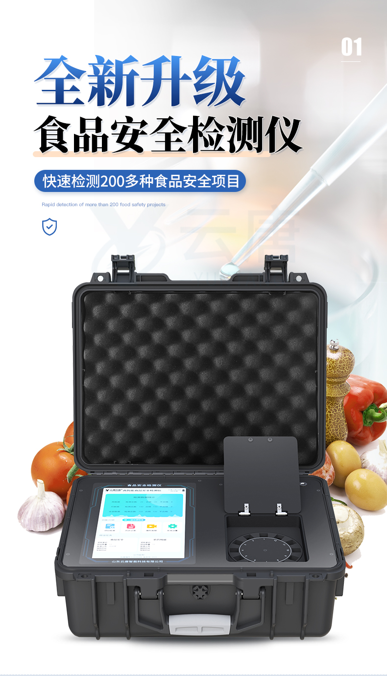 儀器采用手提式一體化系統(tǒng)檢測技術(shù),將分光光度模塊、膠體金檢測模塊、新型農(nóng)殘檢測模塊、數(shù)字化管理模塊、無線通訊模塊高度集成于一體,支持檢測200種食品安全檢測項(xiàng)目,同時(shí)預(yù)留升級(jí)檢測方法。儀器檢測模塊標(biāo)準(zhǔn)化、智能化,檢測項(xiàng)目可隨意自由組合。檢測箱體內(nèi)置多個(gè)標(biāo)準(zhǔn)檢測單元,檢測模塊可以調(diào)整配置。顯示屏幕:儀器采用10.1英寸豎向液晶觸摸屏顯,搭配運(yùn)行安卓智能操作系統(tǒng),主控芯片采用ARM Cortex-A7,RK3288/4核處理器,主頻1.88Ghz,操作方便,性能更強(qiáng)。檢測通道:≥12通道;采用精密旋轉(zhuǎn)比色池設(shè)計(jì),使用同芯片同光源校準(zhǔn)精度,解決不同光源之間的誤差值,更加準(zhǔn)確**。(1-12通道間誤差0.1%,***:**202022821055.2)儀器光源:高精度進(jìn)口四波長冷光源,每個(gè)通道均配置 410、520、590、630nm 波長光源,標(biāo)配**的光路切換裝置,專利光路切換功能可實(shí)現(xiàn)64波長,并且所有檢測項(xiàng)目可實(shí)現(xiàn)所有通道同時(shí)檢測。設(shè)備可一鍵校準(zhǔn),自動(dòng)保存校準(zhǔn)數(shù)據(jù),自動(dòng)對(duì)比校驗(yàn),得到精準(zhǔn)光源,采用Android SP存儲(chǔ)數(shù)據(jù),光源數(shù)據(jù)永不丟失,方便每一次使用。通訊接口:配備無線通信模塊、4G(APN)通訊模塊、藍(lán)牙傳輸,同時(shí)具有雙USB接口以及RJ45網(wǎng)線接口,可以多方式實(shí)現(xiàn)數(shù)據(jù)保存及數(shù)據(jù)傳輸。存儲(chǔ)方式:支持U盤存儲(chǔ),標(biāo)準(zhǔn)USB接口,免驅(qū)動(dòng)安裝。檢測結(jié)果存儲(chǔ)容量20萬條以上,可生成Excel表格進(jìn)行拷貝,并具有登錄保護(hù)功能。智能化操作系統(tǒng):: ★操作系統(tǒng):儀器可在同一檢測界面自動(dòng)對(duì)應(yīng)相關(guān)檢測通道,一次性選擇1-12個(gè)樣品名稱,無需退出界面,節(jié)省操作時(shí)間。并可以對(duì)每個(gè)通道屬性和樣品信息單獨(dú)進(jìn)行編輯,例如送檢單位、人員,檢測人員等,打印時(shí)勾選打印顯示。★數(shù)據(jù)集成系統(tǒng):設(shè)備首頁自動(dòng)匯總分析檢測數(shù)據(jù),包含:周檢測數(shù)據(jù)、月檢測數(shù)據(jù),全部檢測總數(shù)量,均包含檢測總數(shù),合格數(shù),不合格數(shù),以及相關(guān)柱形分析圖,各項(xiàng)檢測數(shù)據(jù)一目了然,無需電腦查詢,更加快捷直觀。★數(shù)據(jù)庫系統(tǒng):十幾項(xiàng)數(shù)據(jù)庫分類管理儀器:包含項(xiàng)目類型、項(xiàng)目數(shù)據(jù)、檢測數(shù)據(jù)、歷史記錄、國標(biāo)信息、曲線信息、采樣信息、檢測信息、受檢信息、復(fù)核信息、圖表信息、光源校準(zhǔn)信息、打印樣式信息、樣品庫信息等等,數(shù)據(jù)庫之間互相協(xié)調(diào)聯(lián)動(dòng)保證數(shù)據(jù)的真實(shí)完整性。同時(shí)產(chǎn)品數(shù)據(jù)庫以及歷史檢測記錄支持一鍵檢索功能。★限量規(guī)判系統(tǒng):具有限量查詢、添加物質(zhì)合規(guī)判定系統(tǒng)。檢測出結(jié)果后,系統(tǒng)自動(dòng)調(diào)用系統(tǒng)數(shù)據(jù)庫中相關(guān)國標(biāo)進(jìn)行比對(duì)判定,客觀顯示判定結(jié)果是否合格★項(xiàng)目預(yù)設(shè)系統(tǒng):儀器具有任務(wù)預(yù)設(shè)模塊,一鍵提前預(yù)設(shè),給出方便快捷的新檢測方案,每一個(gè)任務(wù)分別可以設(shè)置不同的樣品、批次、編號(hào)、來源、備注、抽樣信息、檢測信息、受檢信息、復(fù)核信息等更多信息。樣品送檢時(shí)一鍵調(diào)取保存信息,并可多次調(diào)取,大大提高檢測效率。★數(shù)據(jù)監(jiān)管系統(tǒng):同步對(duì)接監(jiān)管平臺(tái),數(shù)據(jù)可局域網(wǎng)和互聯(lián)網(wǎng)數(shù)據(jù)上傳,檢測結(jié)果可選擇直接傳至食品安全監(jiān)管平臺(tái)。進(jìn)行區(qū)域食品安全監(jiān)管及大數(shù)據(jù)分析處理與數(shù)據(jù)統(tǒng)計(jì),檢測區(qū)域食品安全長短期動(dòng)態(tài),達(dá)到食品安全問題預(yù)估、預(yù)警。★打印系統(tǒng):內(nèi)置全新打印機(jī),新創(chuàng)自定義打印方式,可按需靈活勾選控制:產(chǎn)品合格證(國家農(nóng)業(yè)部標(biāo)準(zhǔn)要求),二維碼,抽樣信息、檢測信息,受檢信息、復(fù)核信息、抽樣日期、檢測日期等信息的打印。供電模式:儀器交直流兩用,直流12V供電,可連接車載電源,可配6ah大容量充電鋰電池,電量可實(shí)時(shí)顯示,方便戶外流動(dòng)測試。膠體金檢測模塊:采用雙通道CMOS成像處理技術(shù)及膠體金免疫層析技術(shù),可同時(shí)讀取雙膠體金卡數(shù)據(jù),自動(dòng)采集、處理分析,將檢測結(jié)果顯示,并可根據(jù)參考限值自動(dòng)判斷檢測結(jié)果,可檢測常見的獸藥殘留、生物毒素、抗生素、違禁添加物等。★探測技術(shù):CMOS成像探測;★檢測通道:1個(gè)通道;★檢測方式:消線法和比色法;★顯示模式:陰性或陽性;★曲線形式:軌道式掃描方式,顯示金標(biāo)卡圖像,實(shí)時(shí)生成、識(shí)別CT曲線圖,無需手動(dòng)調(diào)整,完成檢測后自動(dòng)退出檢測卡。兼容市場上其他金標(biāo)卡,使用耗材不受限制。儀器加入遠(yuǎn)程升級(jí)功能,可定向分客戶分儀器更新,開機(jī)后自動(dòng)更新,客戶無需