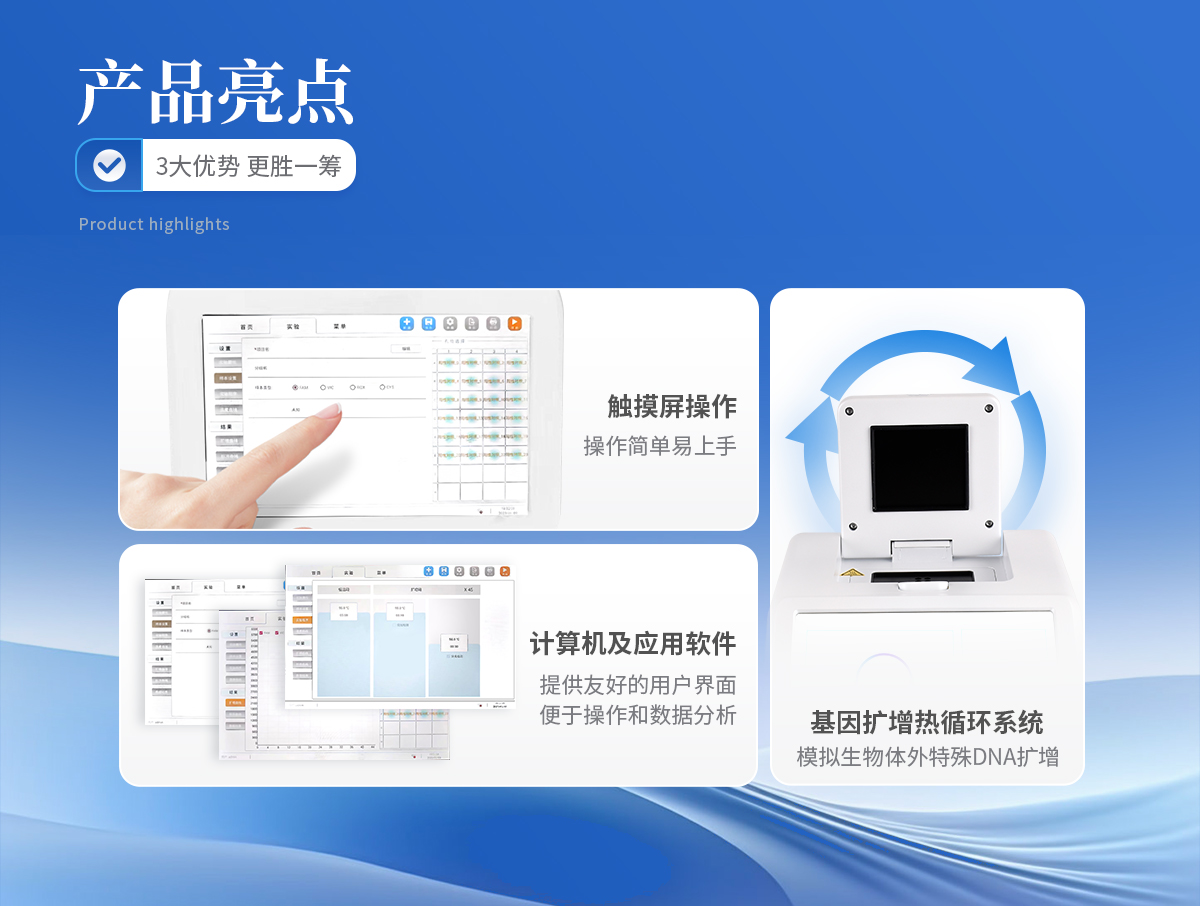 對取于其他動物體內(nèi)的生物樣本(如血液,體液等)中包含的目標核酸,進行快速精準的定性和定量分析,同時也能夠?qū)μ厥鈽颖具M行標準曲線,熔解曲線,基因分型等分析。