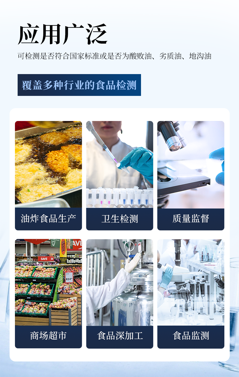 該過酸價氧化值檢測儀為集成化食品安全快速檢測分析設備,目前已于市場監(jiān)管局、食用油加工企業(yè)、學校食堂、衛(wèi)生部門、配送中心、商場超市等單位廣泛使用。