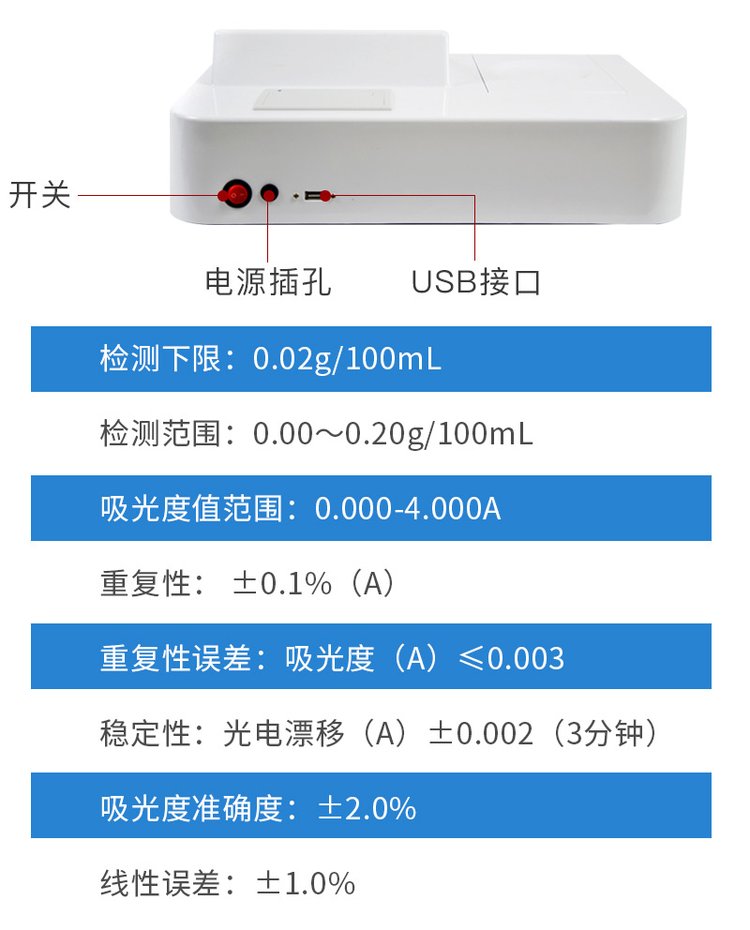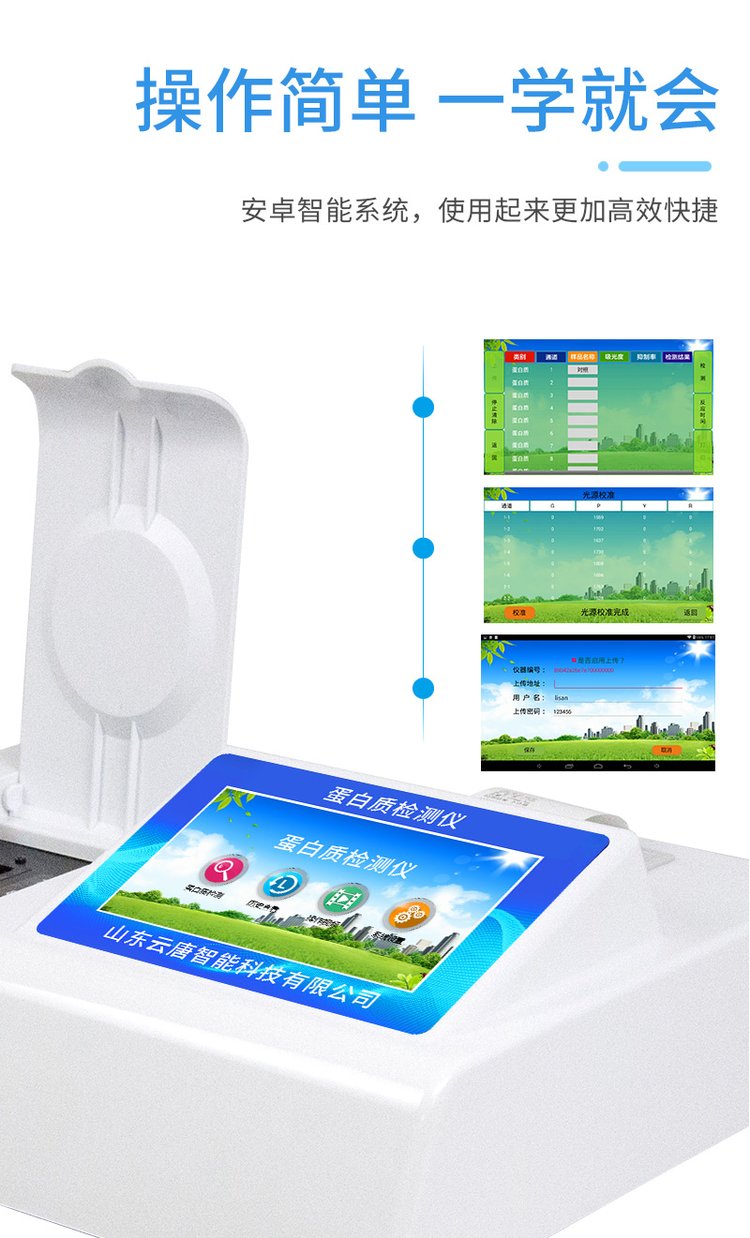 可快速檢測(cè)奶粉、牛奶及乳制品中的蛋白質(zhì),儀器預(yù)留其他項(xiàng)目檢測(cè)程序和端口,根據(jù)日后需求可方便的自主增加檢測(cè)項(xiàng)目。