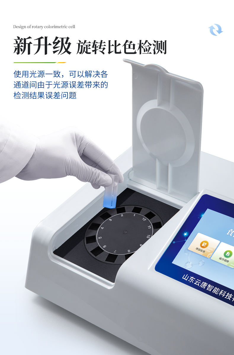 4、檢測(cè)通道:≥12通道;采用精密旋轉(zhuǎn)比色池設(shè)計(jì),使用同芯片同光源校準(zhǔn)精度,解決不同光源之間的誤差值,更加準(zhǔn)確**。