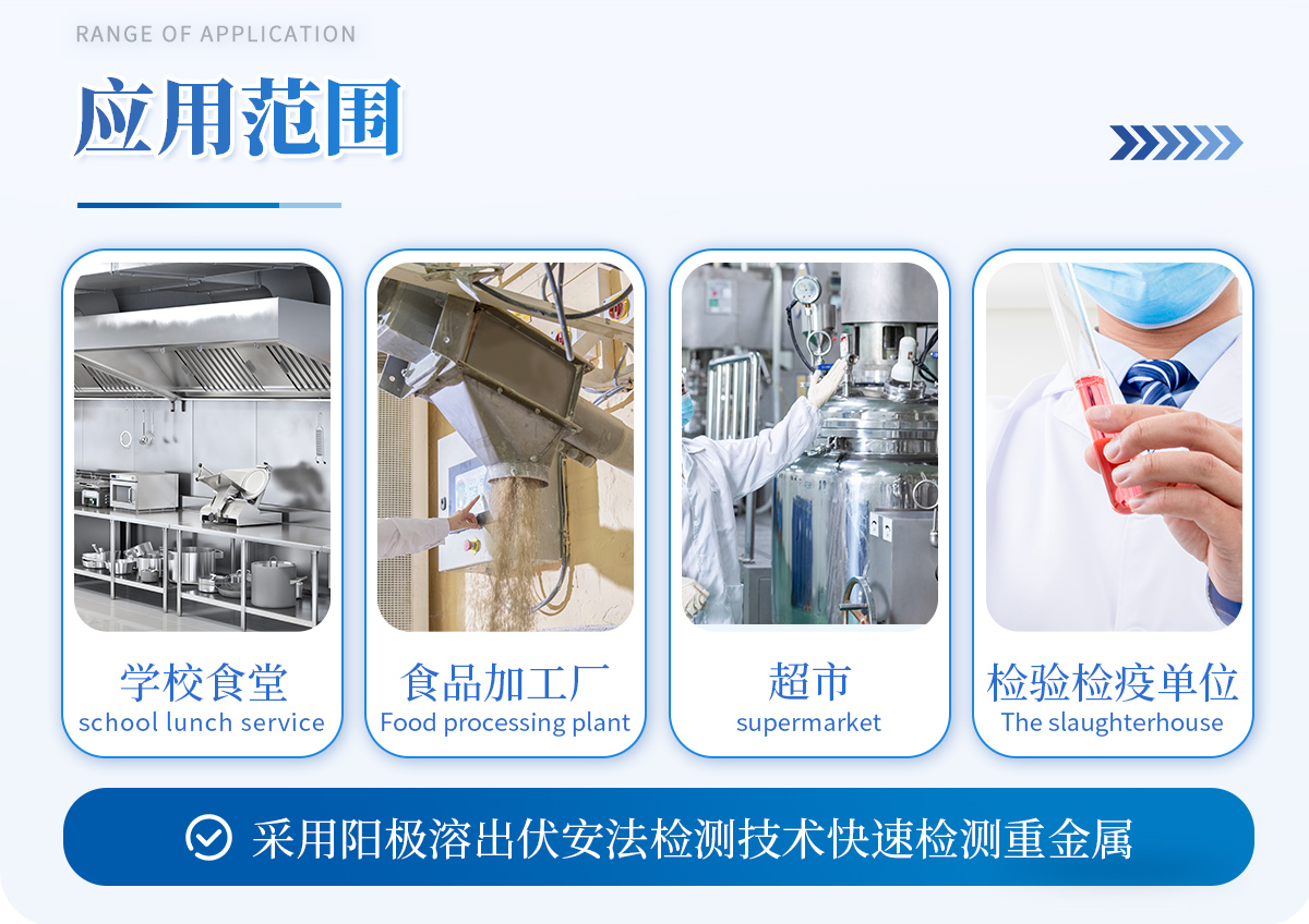 可快速檢測(cè)重金屬鉛、鎘、銅、鋅、汞、砷等。